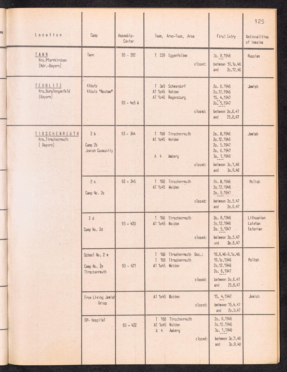 Alphabetisches Verzeichnis der DP-Lager in der US-Zone DeutschlandsAlphabetical Register of DP-Camps in US-Zone of Germany