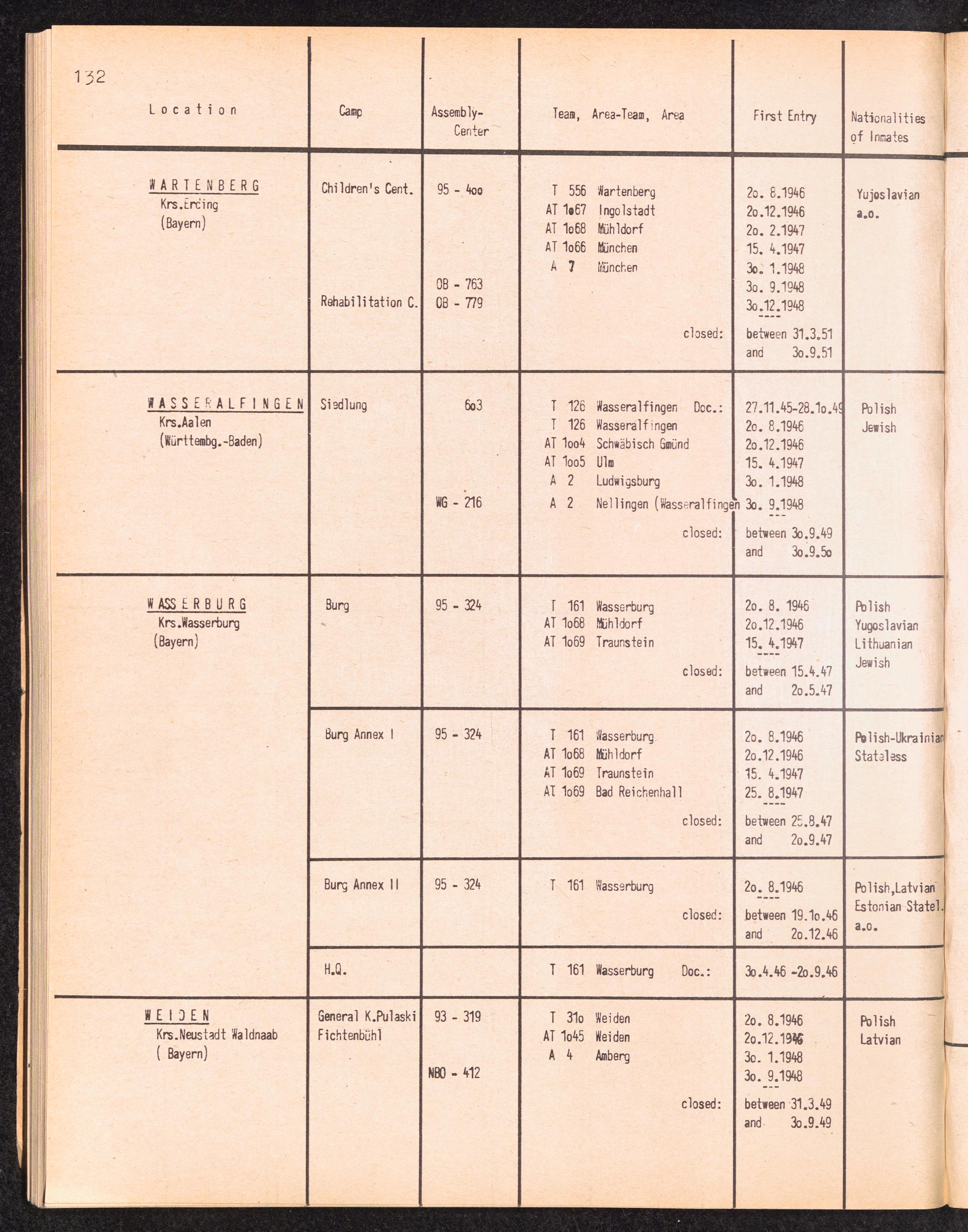 Alphabetisches Verzeichnis der DP-Lager in der US-Zone DeutschlandsAlphabetical Register of DP-Camps in US-Zone of Germany