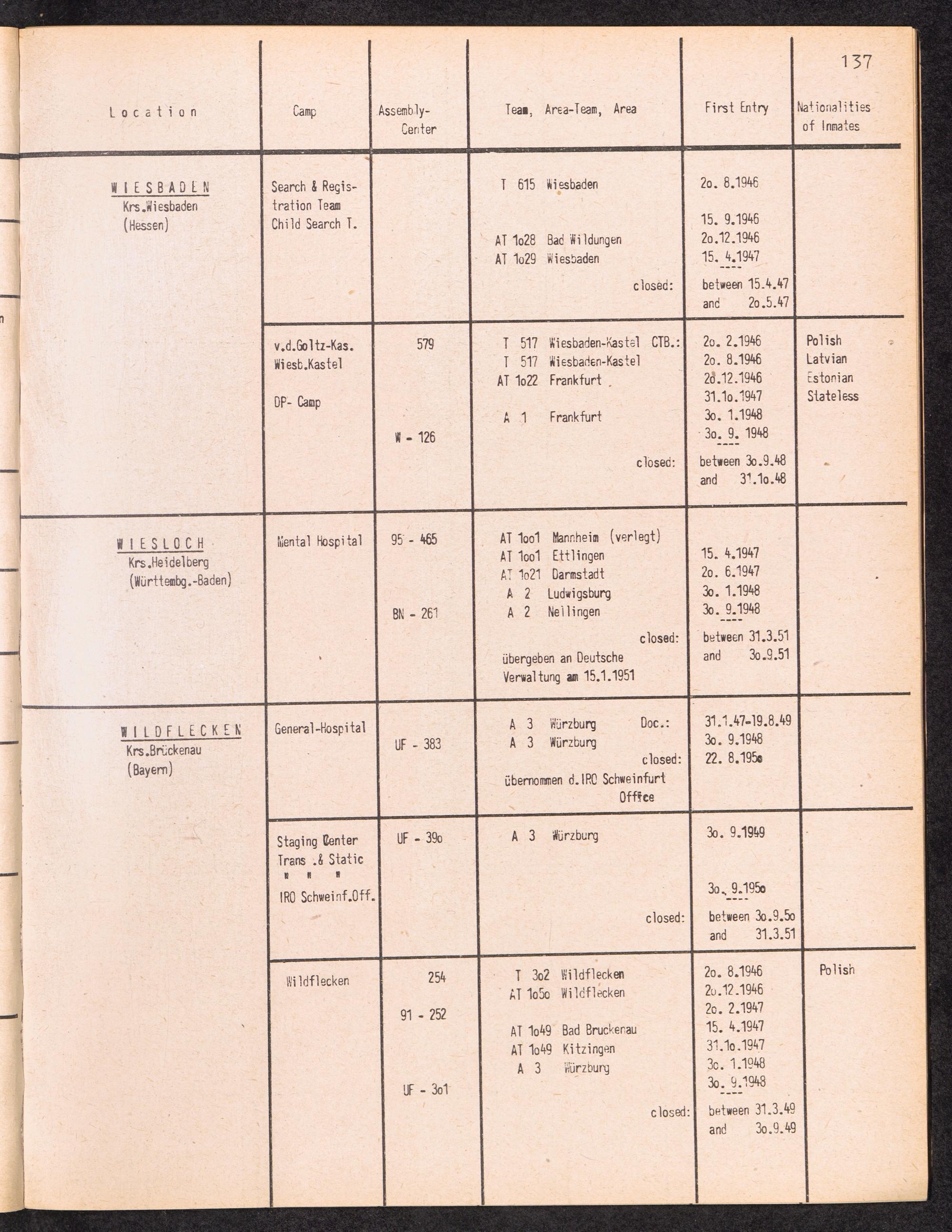 Alphabetisches Verzeichnis der DP-Lager in der US-Zone DeutschlandsAlphabetical Register of DP-Camps in US-Zone of Germany