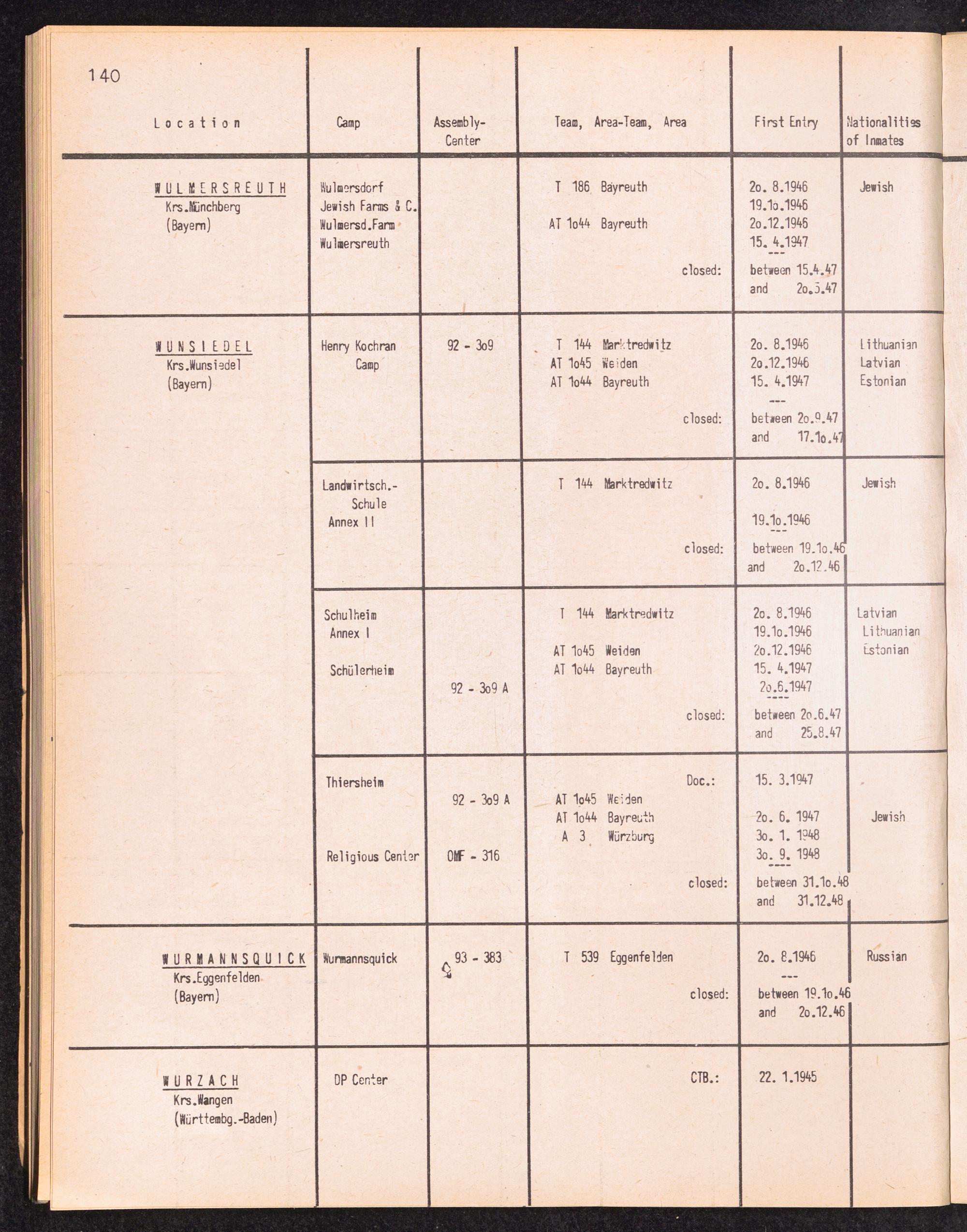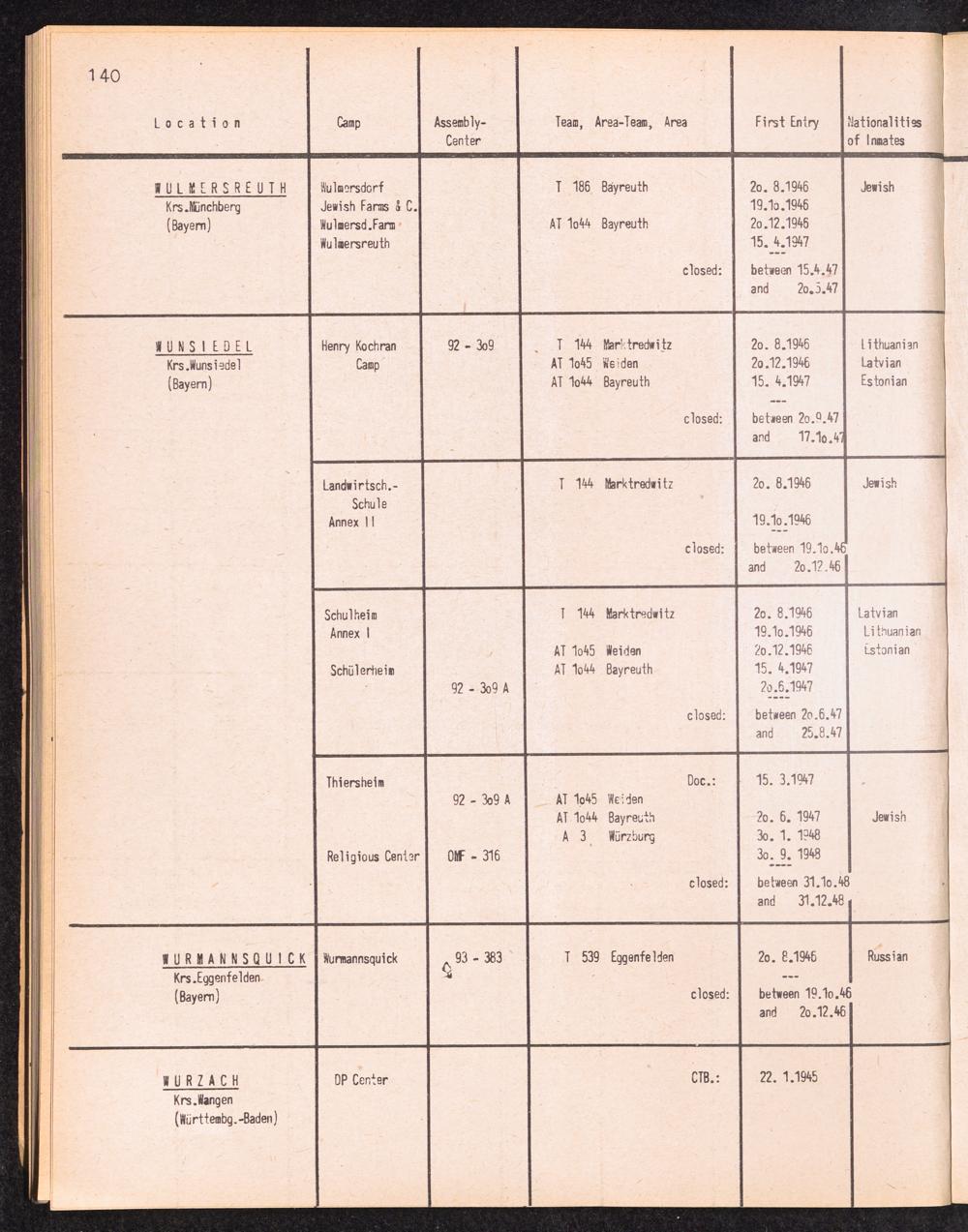 Alphabetisches Verzeichnis der DP-Lager in der US-Zone DeutschlandsAlphabetical Register of DP-Camps in US-Zone of Germany