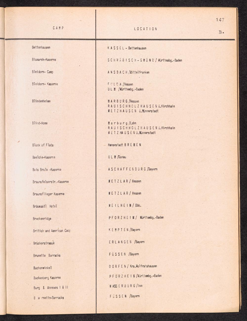 Alphabetisches Verzeichnis der DP-Lager in der US-Zone DeutschlandsAlphabetical Register of DP-Camps in US-Zone of Germany