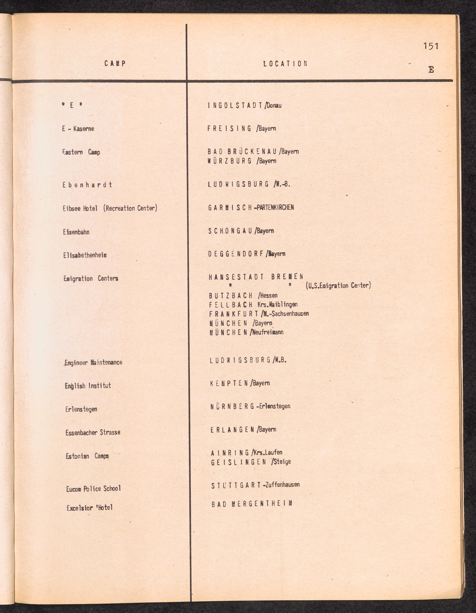 Alphabetisches Verzeichnis der DP-Lager in der US-Zone DeutschlandsAlphabetical Register of DP-Camps in US-Zone of Germany