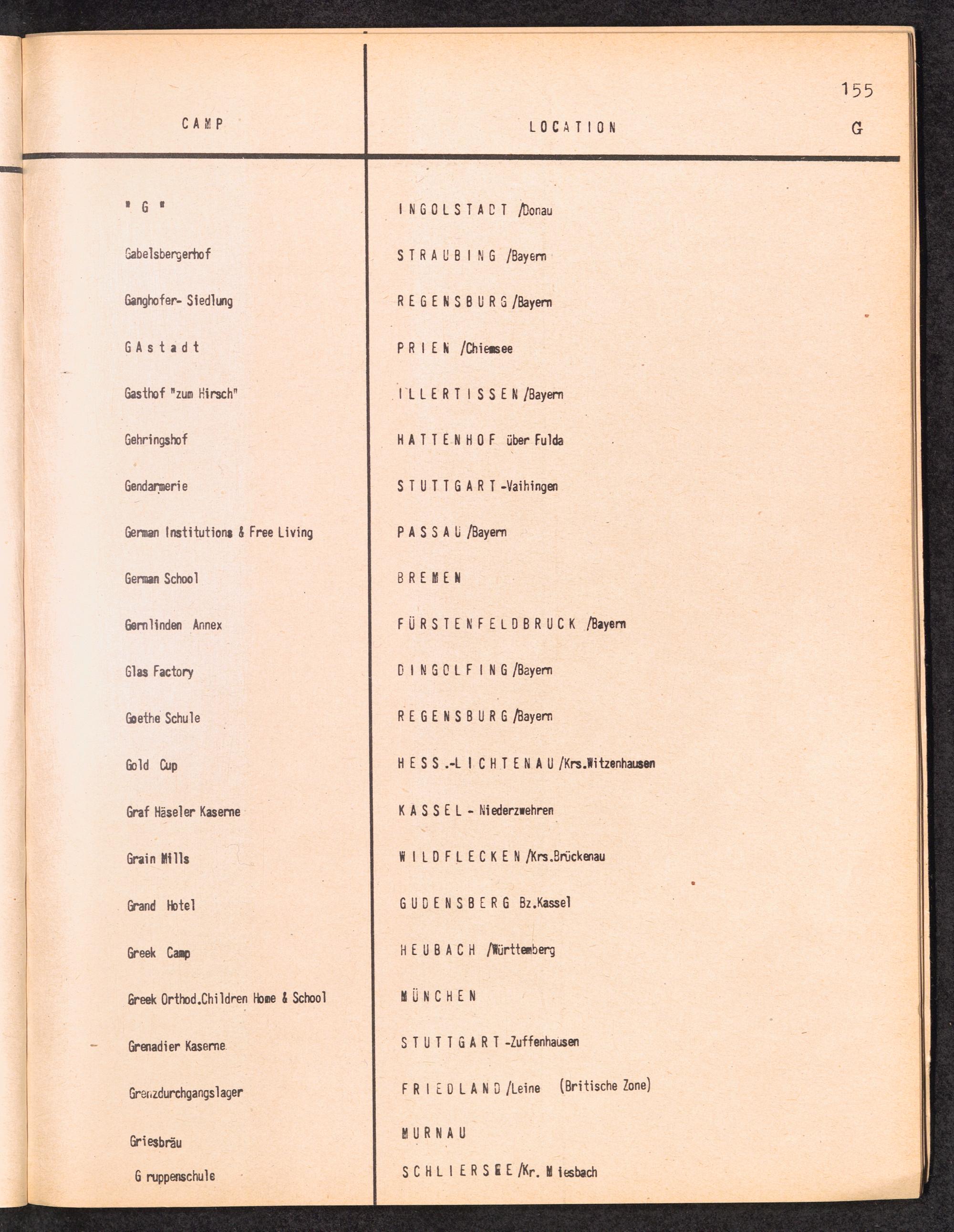 Alphabetisches Verzeichnis der DP-Lager in der US-Zone DeutschlandsAlphabetical Register of DP-Camps in US-Zone of Germany
