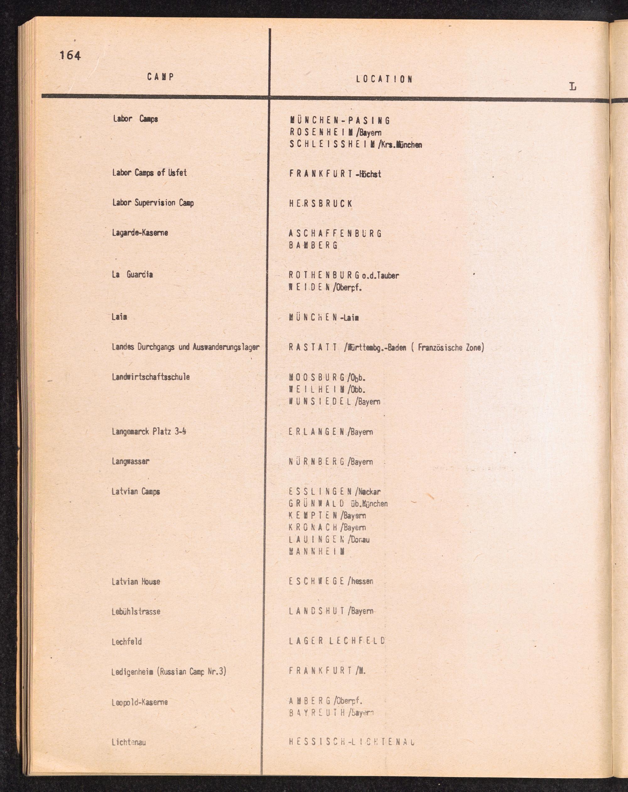 Alphabetisches Verzeichnis der DP-Lager in der US-Zone DeutschlandsAlphabetical Register of DP-Camps in US-Zone of Germany