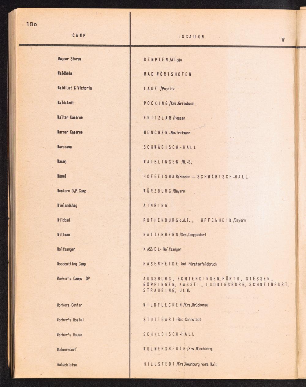 Alphabetisches Verzeichnis der DP-Lager in der US-Zone DeutschlandsAlphabetical Register of DP-Camps in US-Zone of Germany