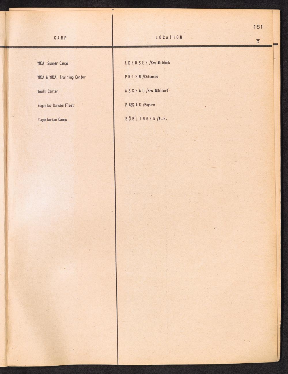 Alphabetisches Verzeichnis der DP-Lager in der US-Zone DeutschlandsAlphabetical Register of DP-Camps in US-Zone of Germany