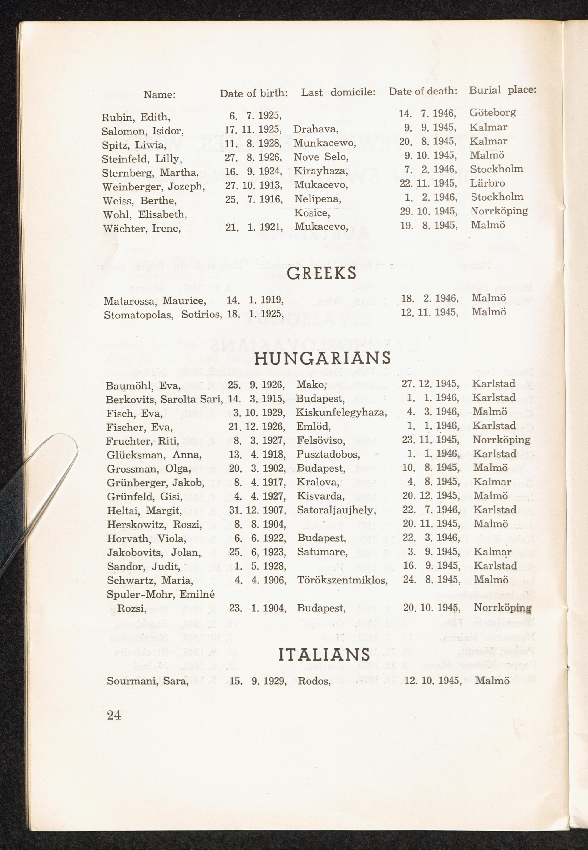 PDF 23 List of Jewish Refugees, who died in Sweden in 1945 - 1946