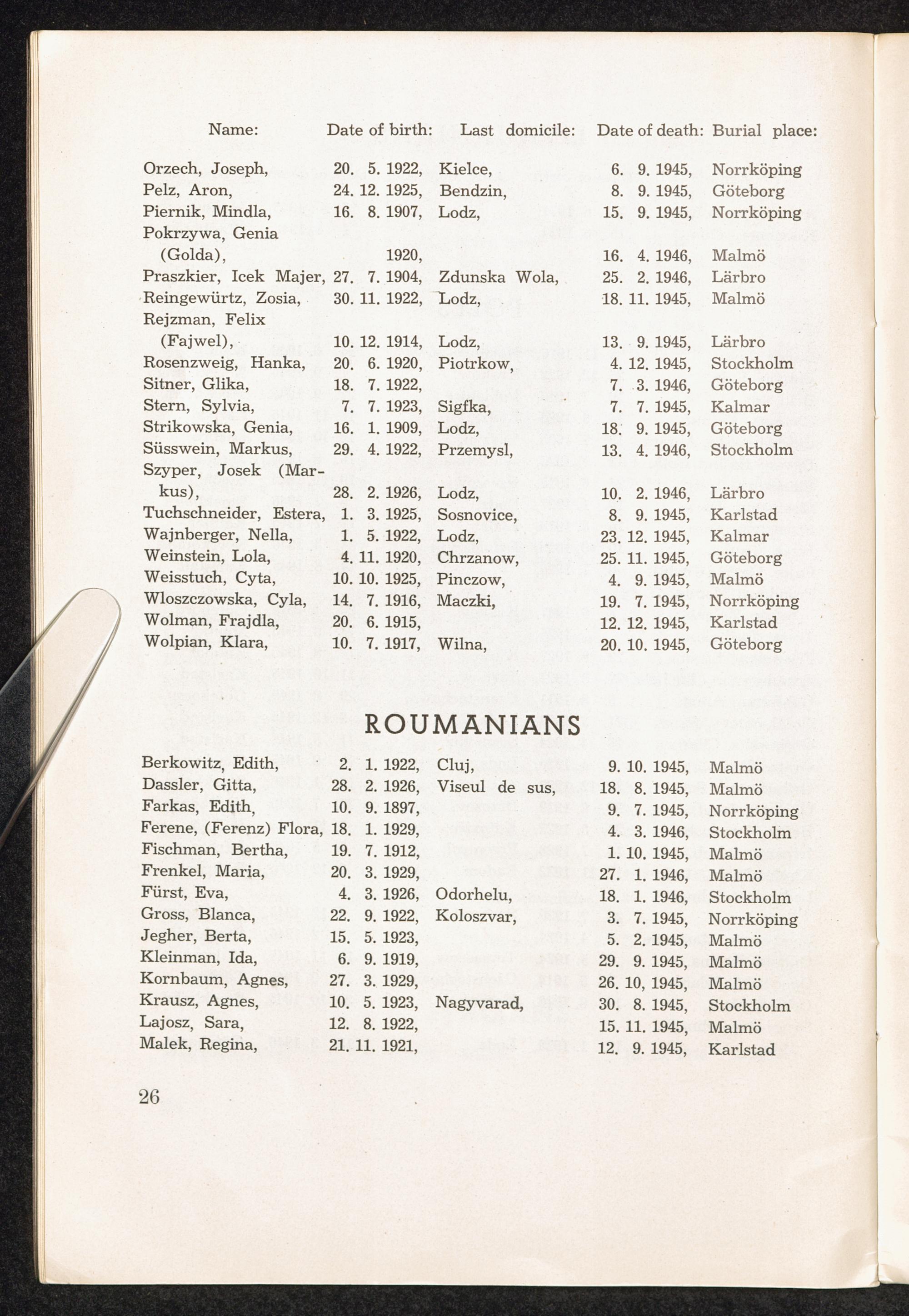 PDF 23 List of Jewish Refugees, who died in Sweden in 1945 - 1946