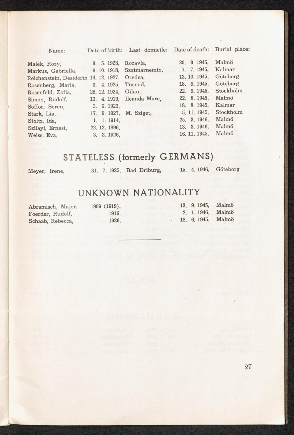 PDF 23 List of Jewish Refugees, who died in Sweden in 1945 - 1946
