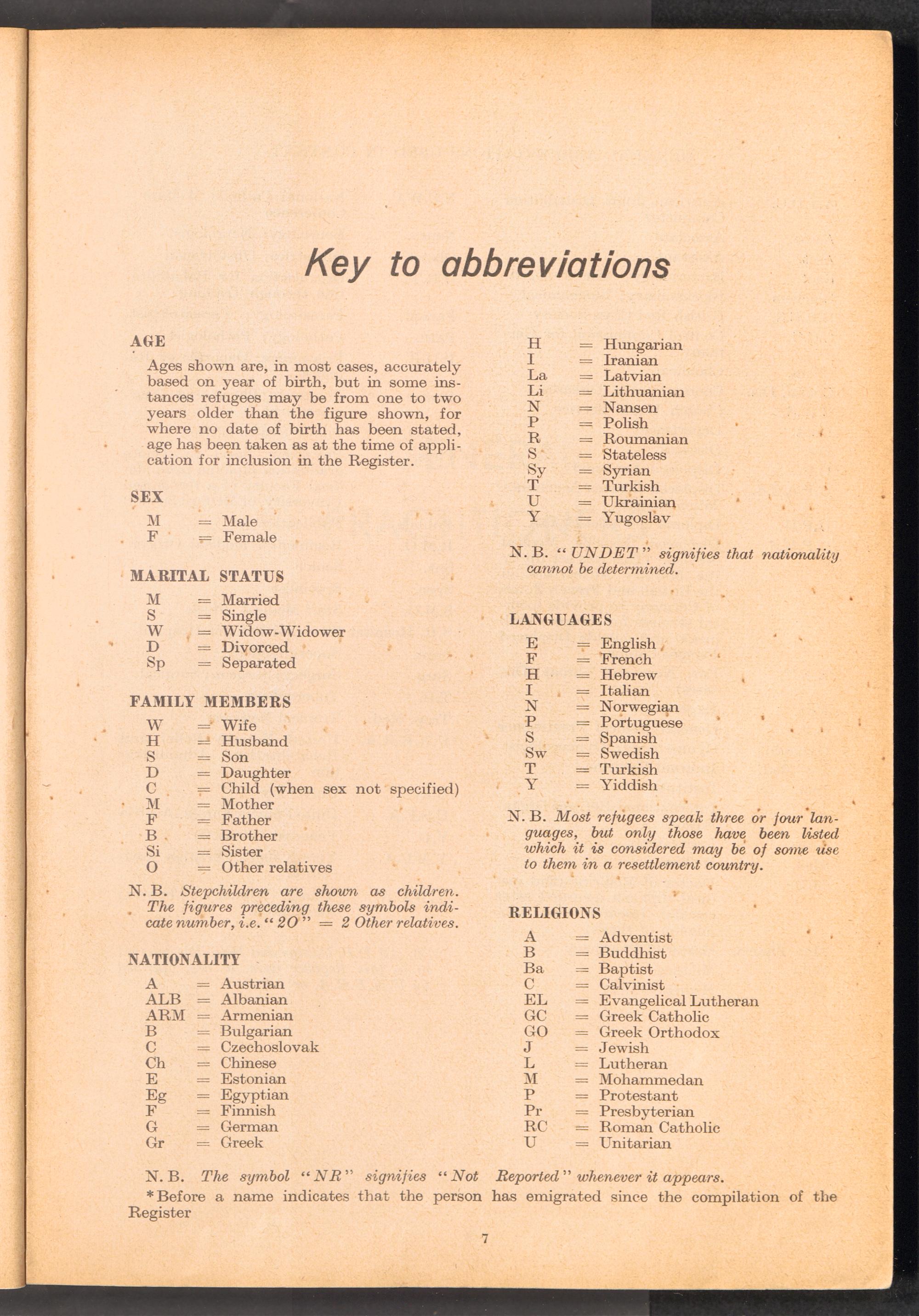 Displaced Persons Professional Medical Register Key to Abbreviations