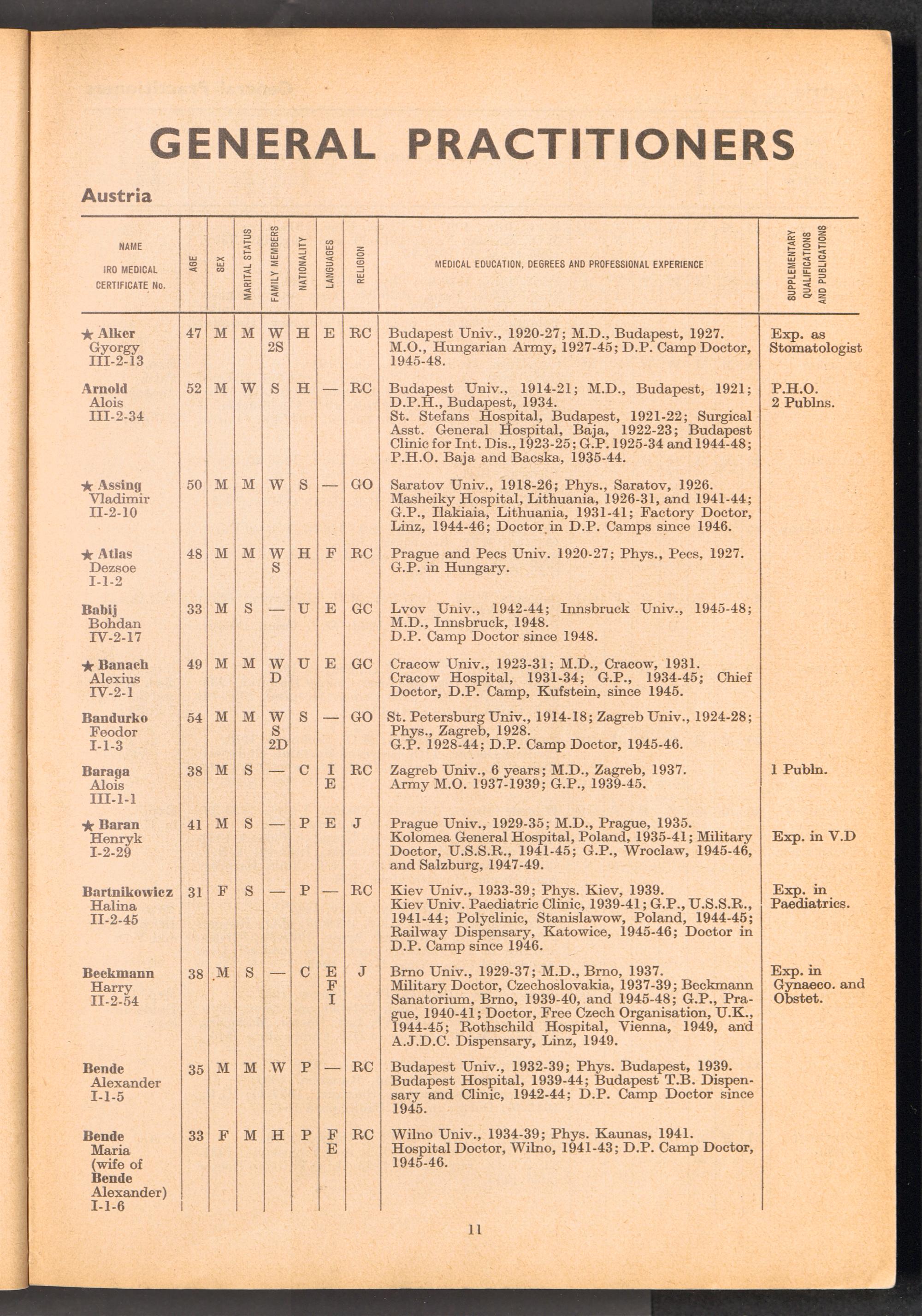 Displaced Persons Professional Medical Register / International Refugee Organization