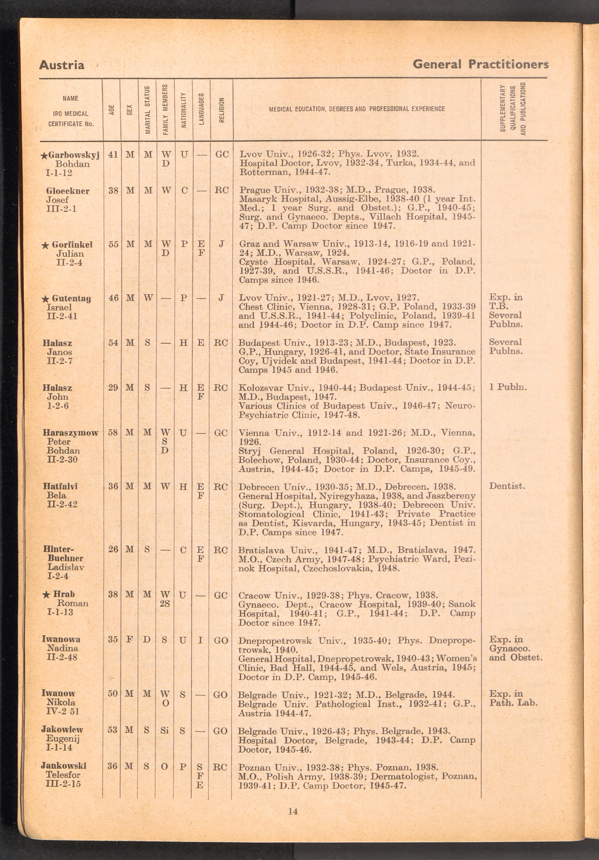 Displaced Persons Professional Medical Register / International Refugee Organization