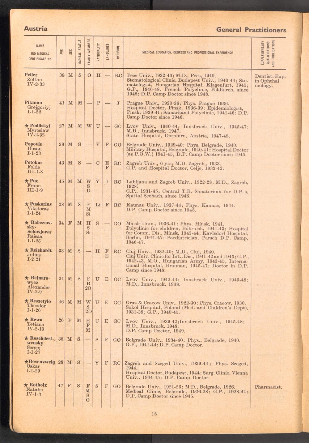 Displaced Persons Professional Medical Register / International Refugee Organization