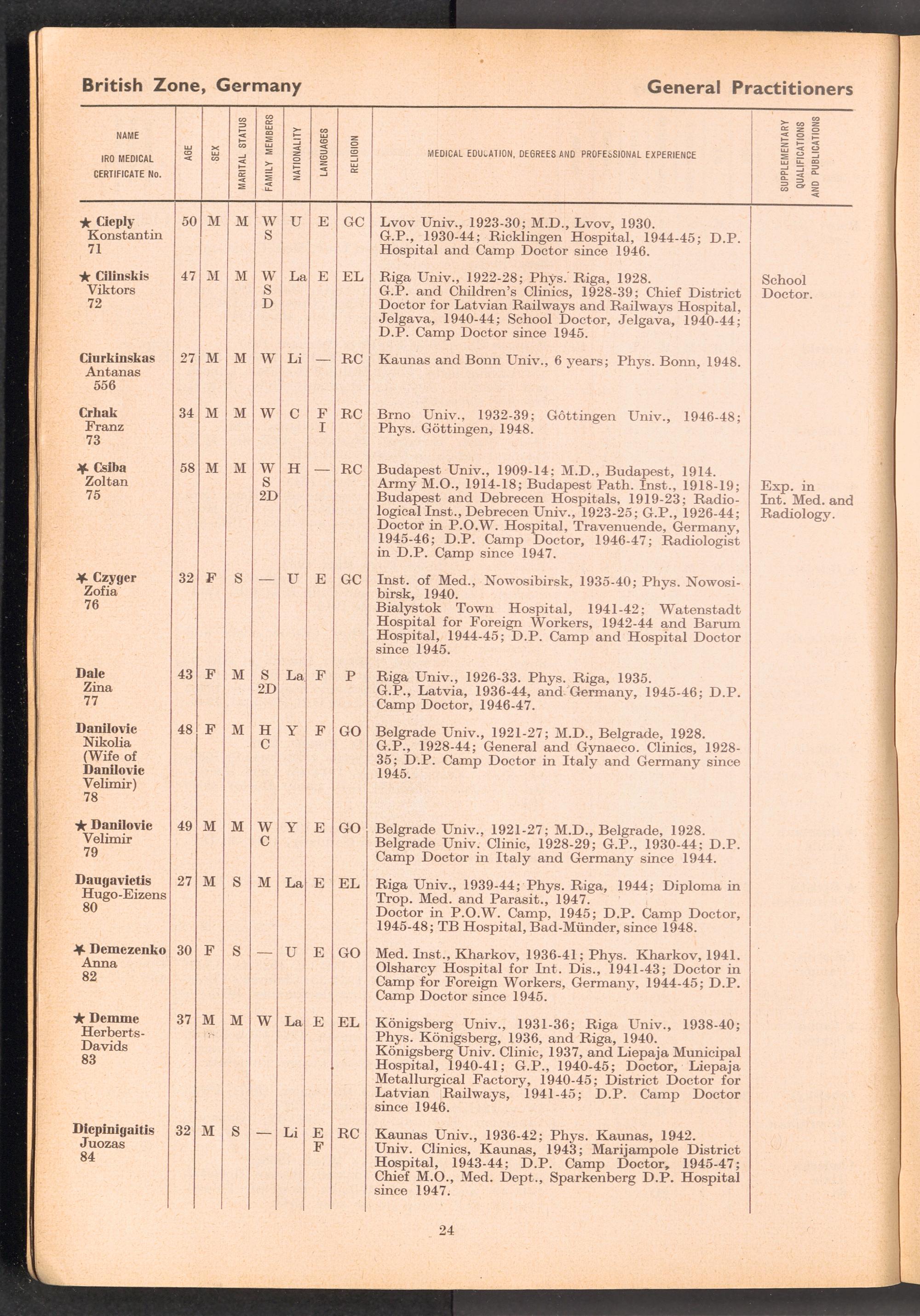 Displaced Persons Professional Medical Register / International Refugee Organization