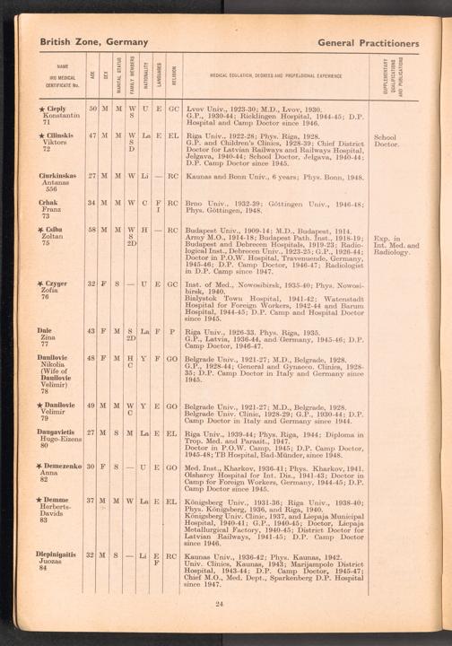 Displaced Persons Professional Medical Register General Practitioners