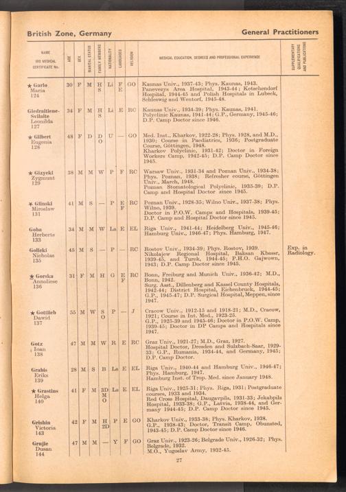 Displaced Persons Professional Medical Register / International Refugee Organization