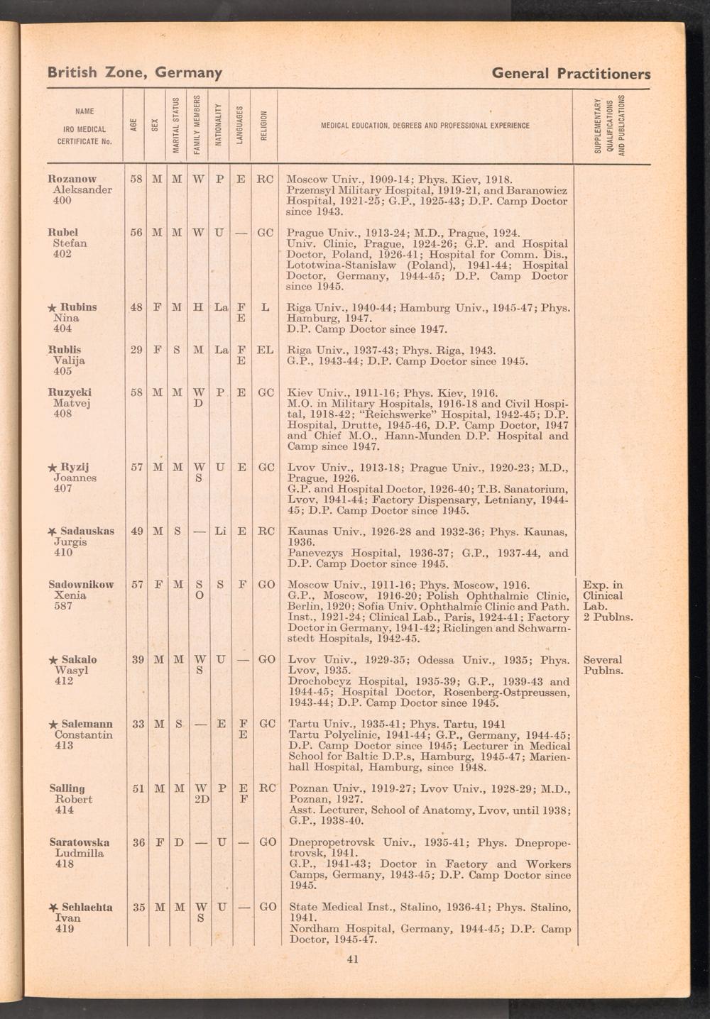 Displaced Persons Professional Medical Register / International Refugee Organization
