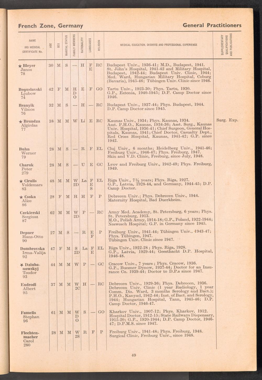 Displaced Persons Professional Medical Register / International Refugee Organization