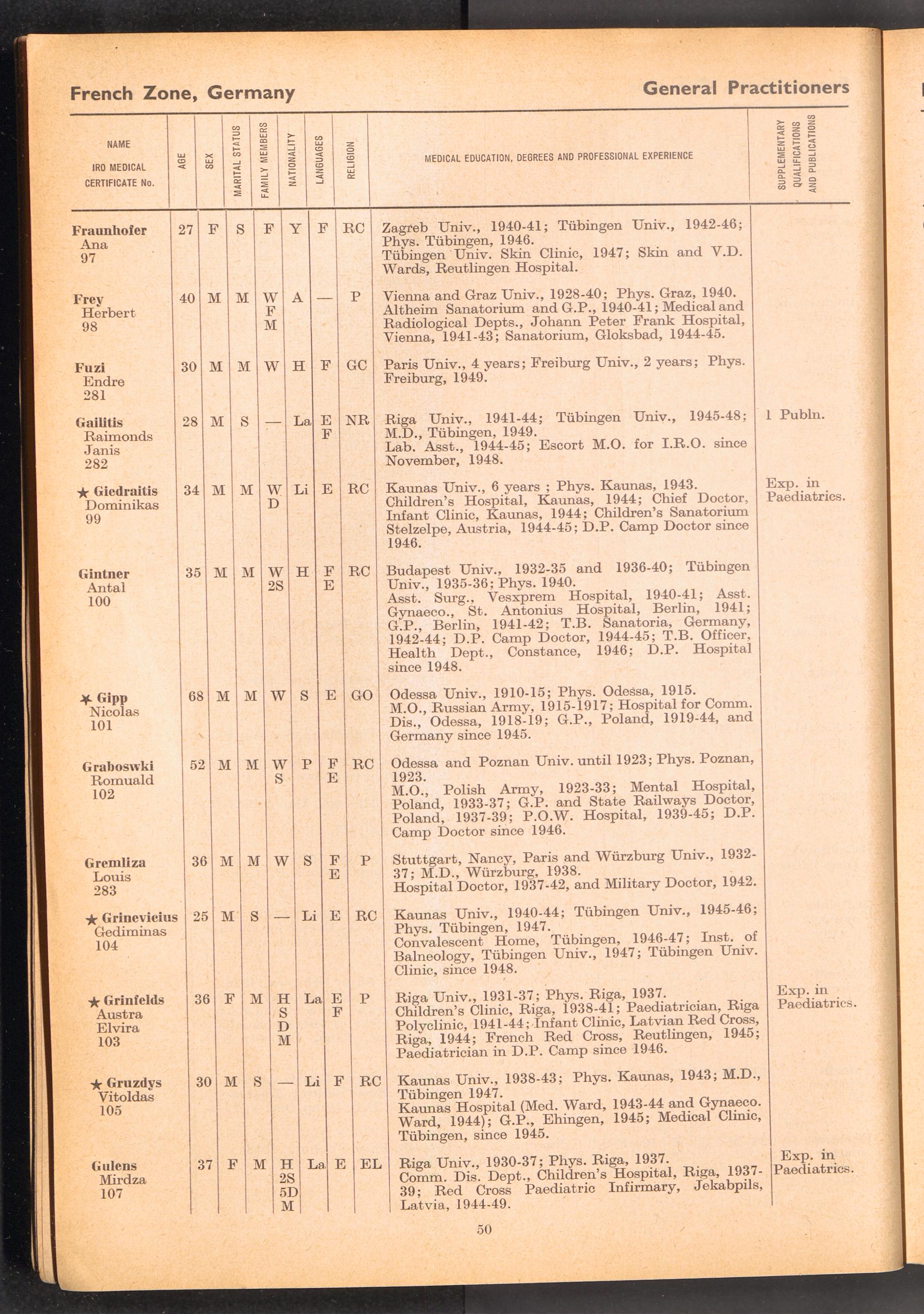 Displaced Persons Professional Medical Register / International Refugee Organization