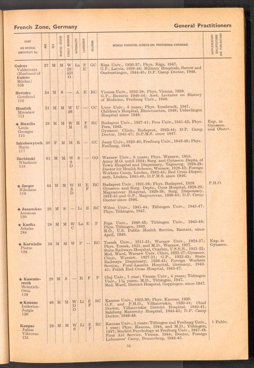 Displaced Persons Professional Medical Register / International Refugee Organization