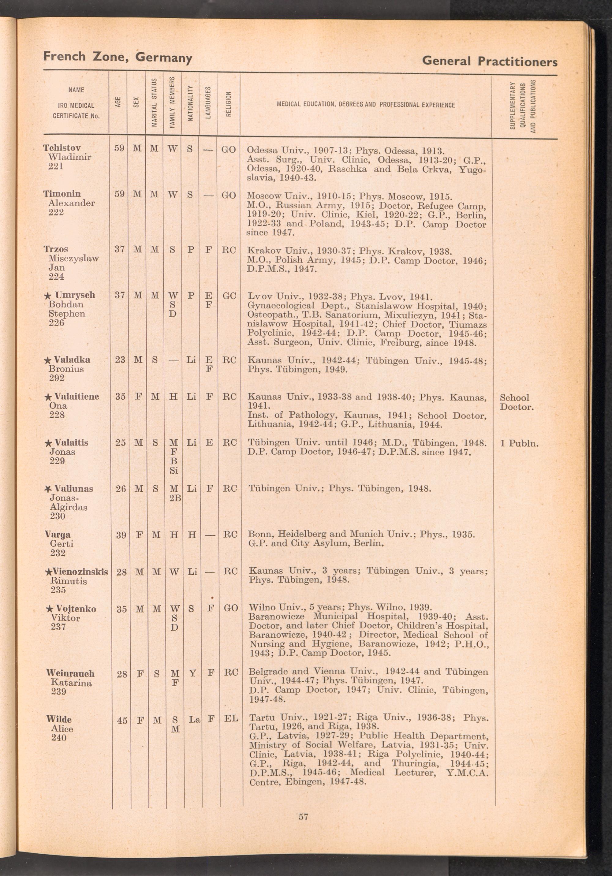Displaced Persons Professional Medical Register / International Refugee Organization