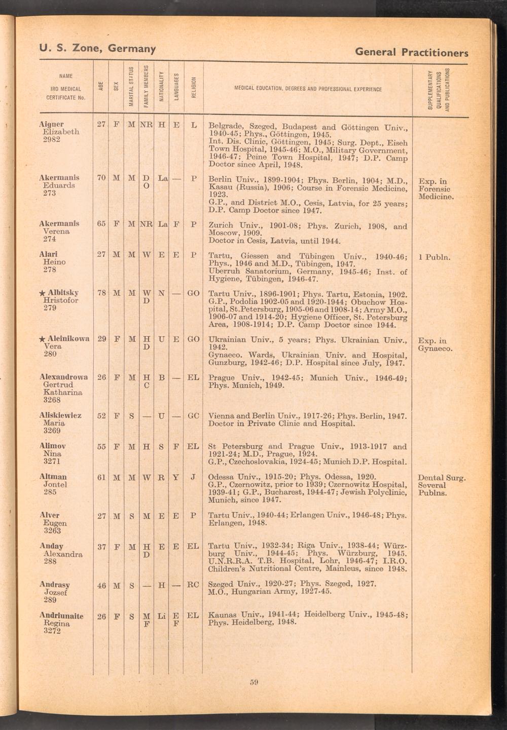 Displaced Persons Professional Medical Register / International Refugee Organization