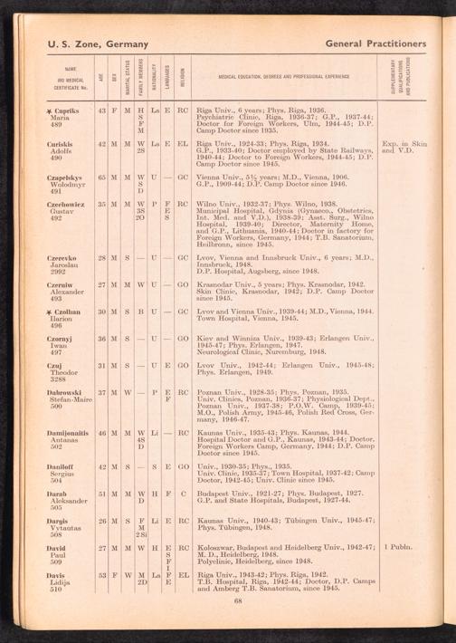 Displaced Persons Professional Medical Register / International Refugee Organization