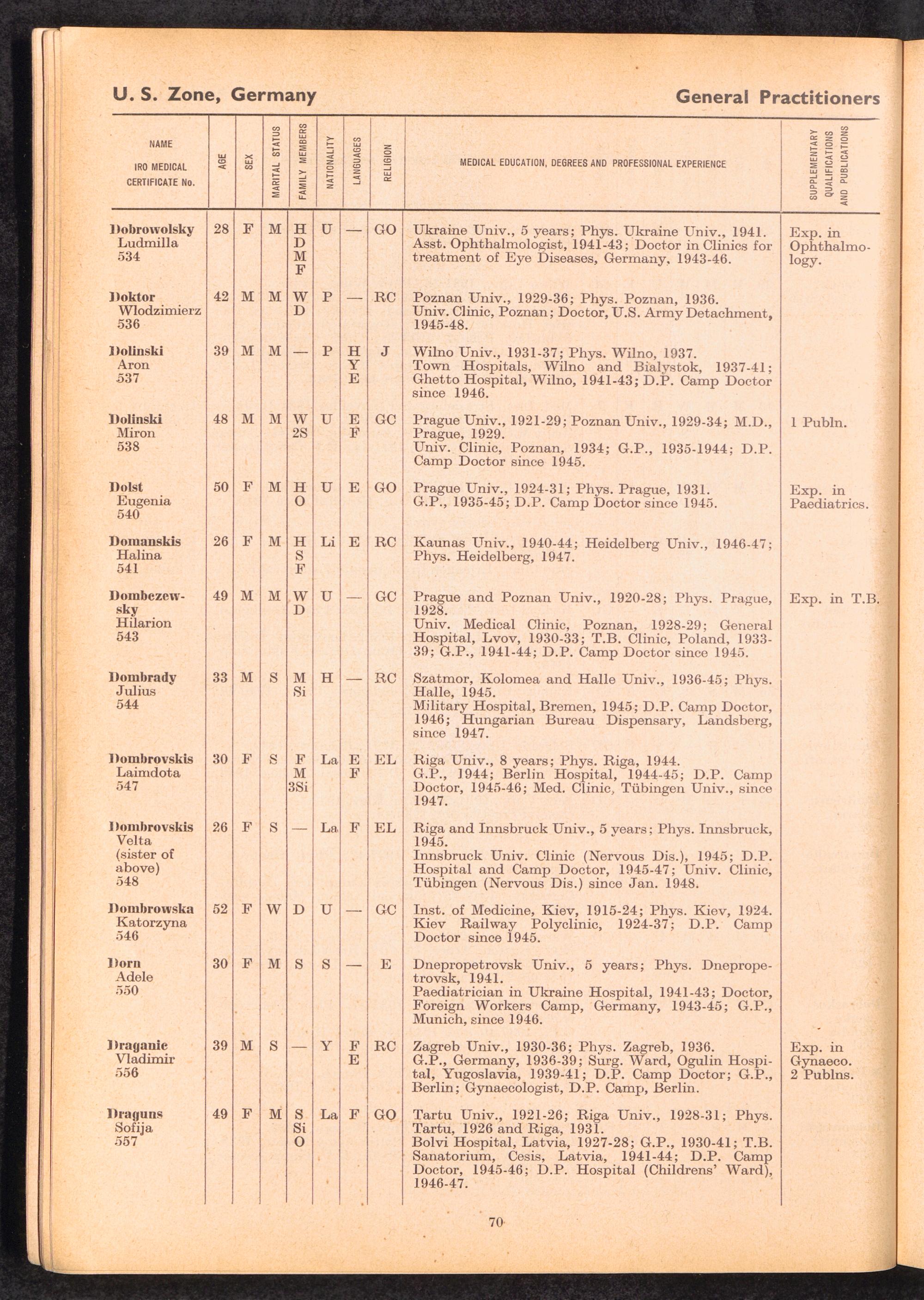 Displaced Persons Professional Medical Register / International Refugee Organization