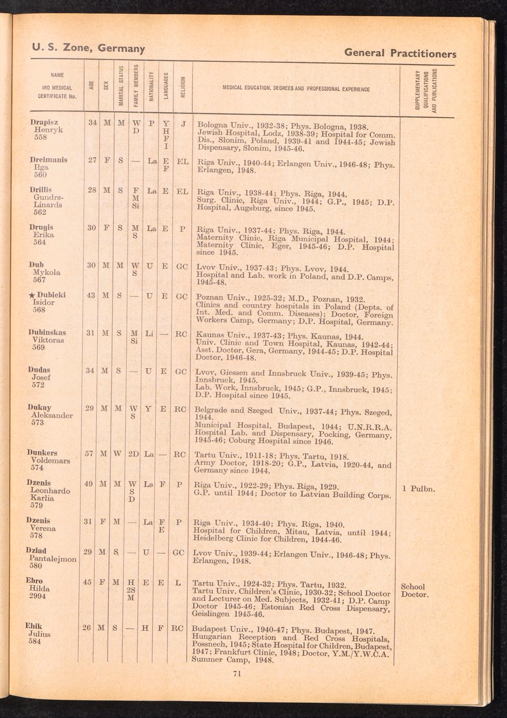 Displaced Persons Professional Medical Register / International Refugee Organization