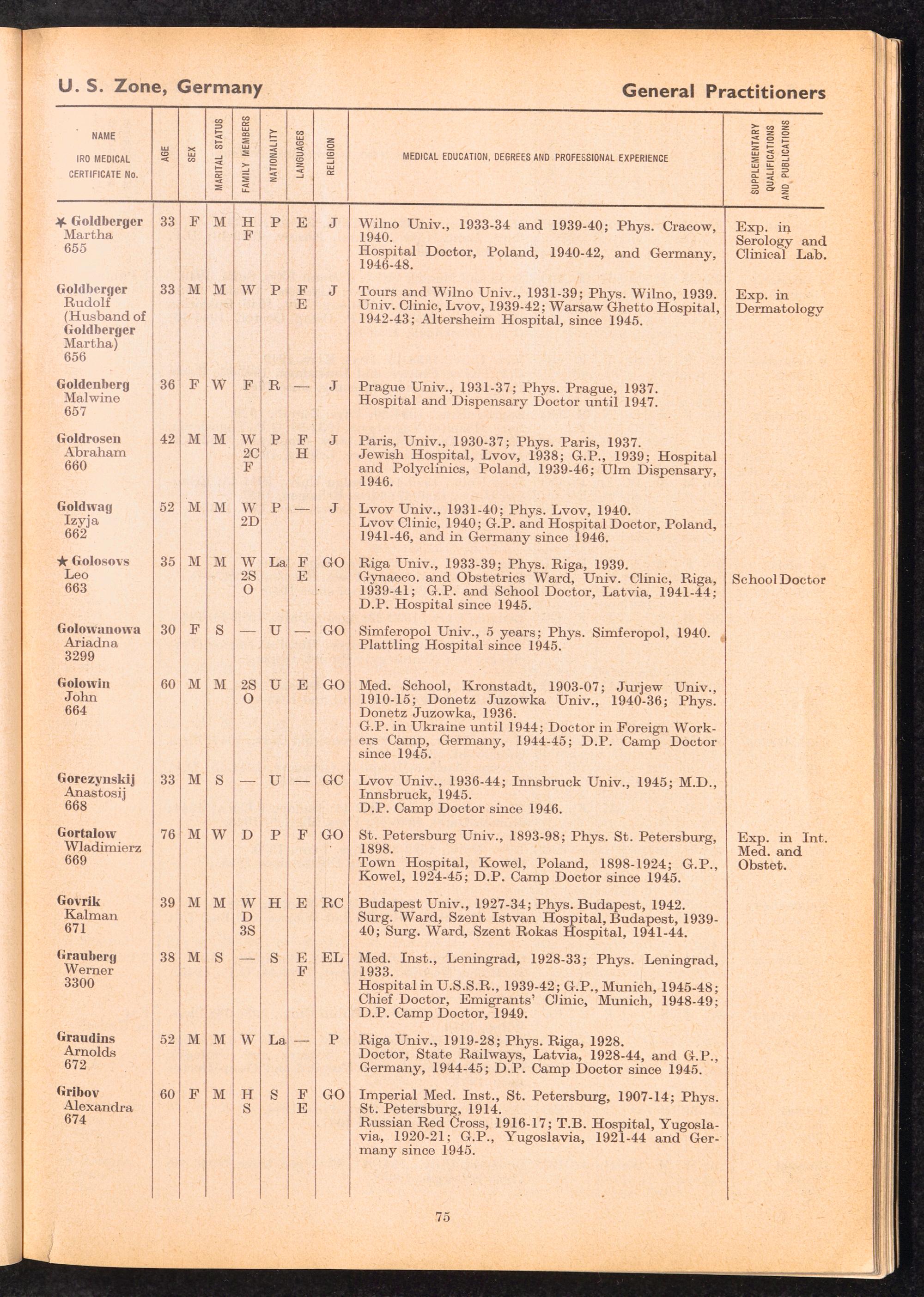 Displaced Persons Professional Medical Register / International Refugee Organization