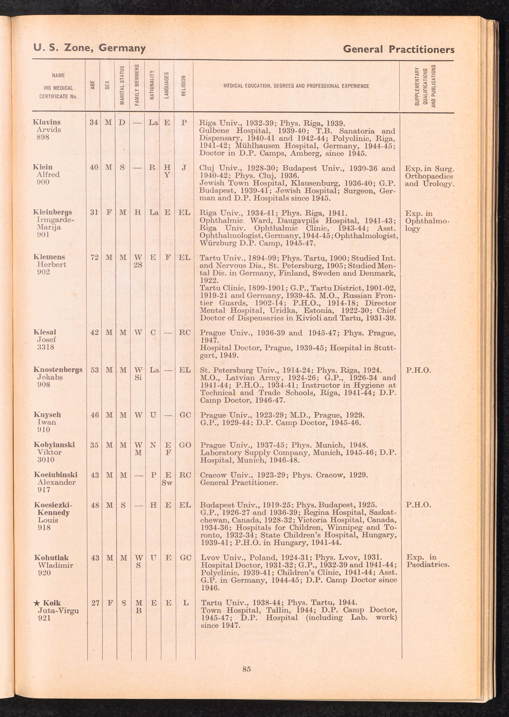 Displaced Persons Professional Medical Register General Practitioners