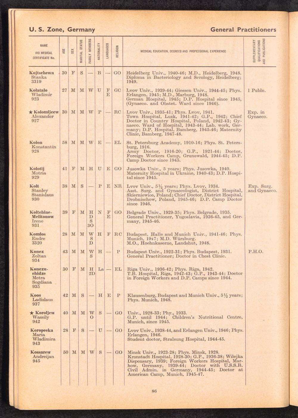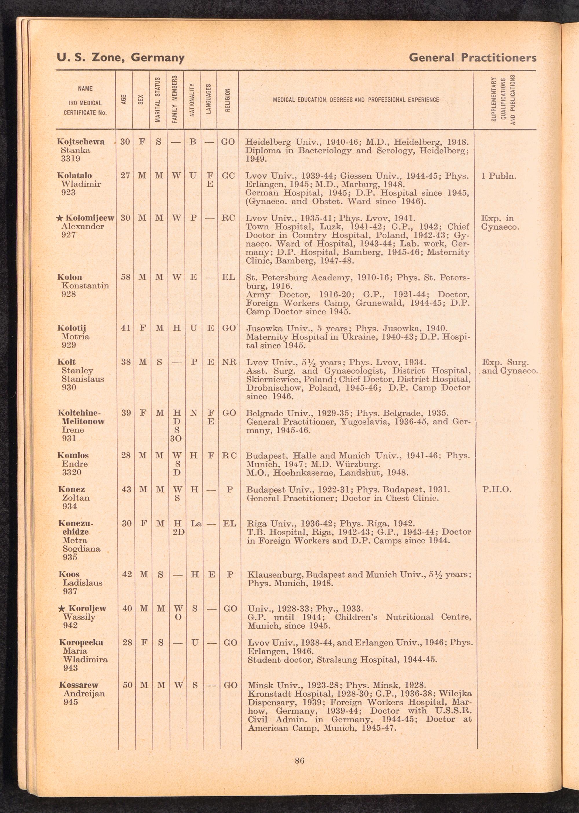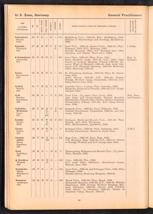 Displaced Persons Professional Medical Register / International Refugee Organization