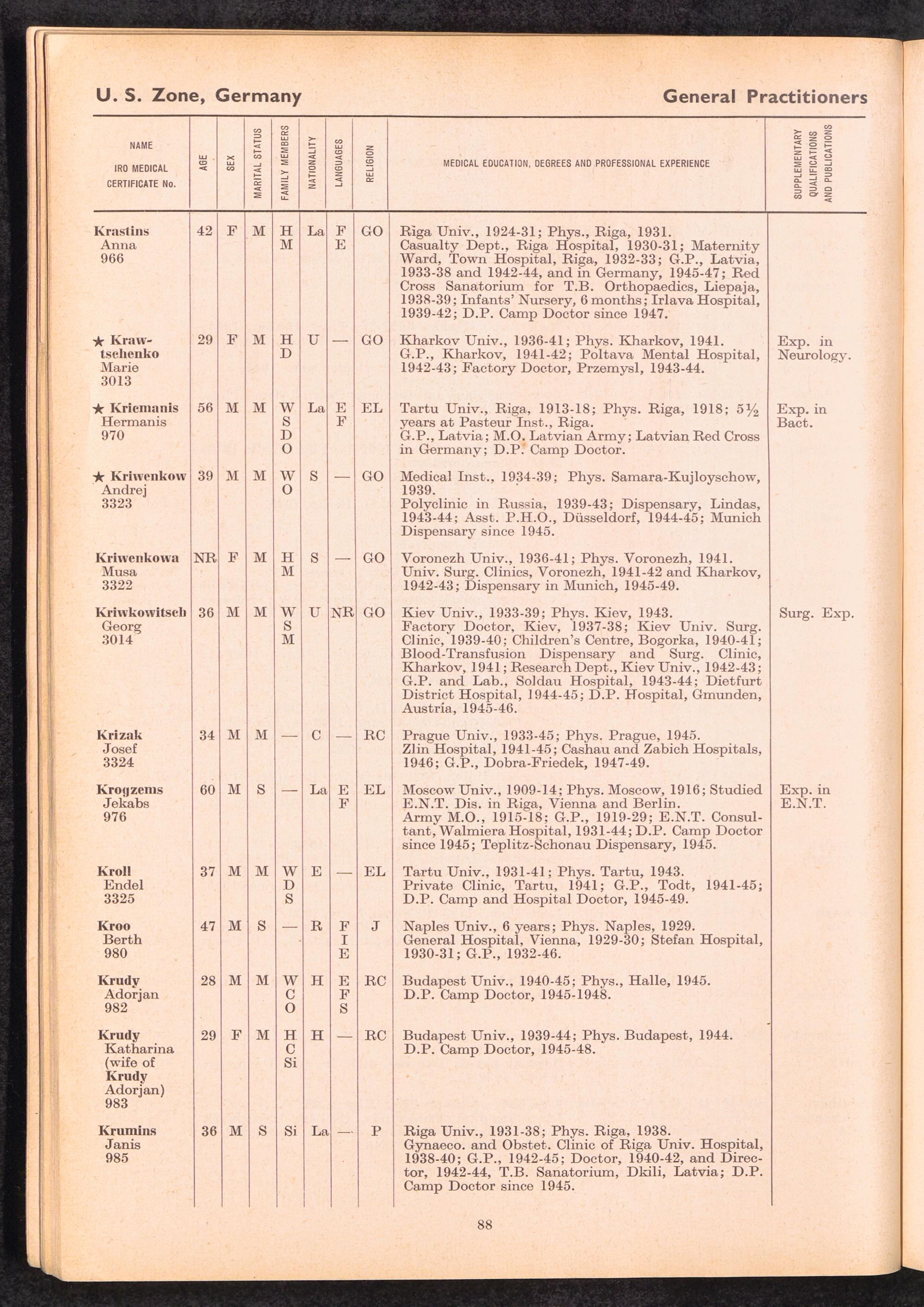 Displaced Persons Professional Medical Register / International Refugee Organization