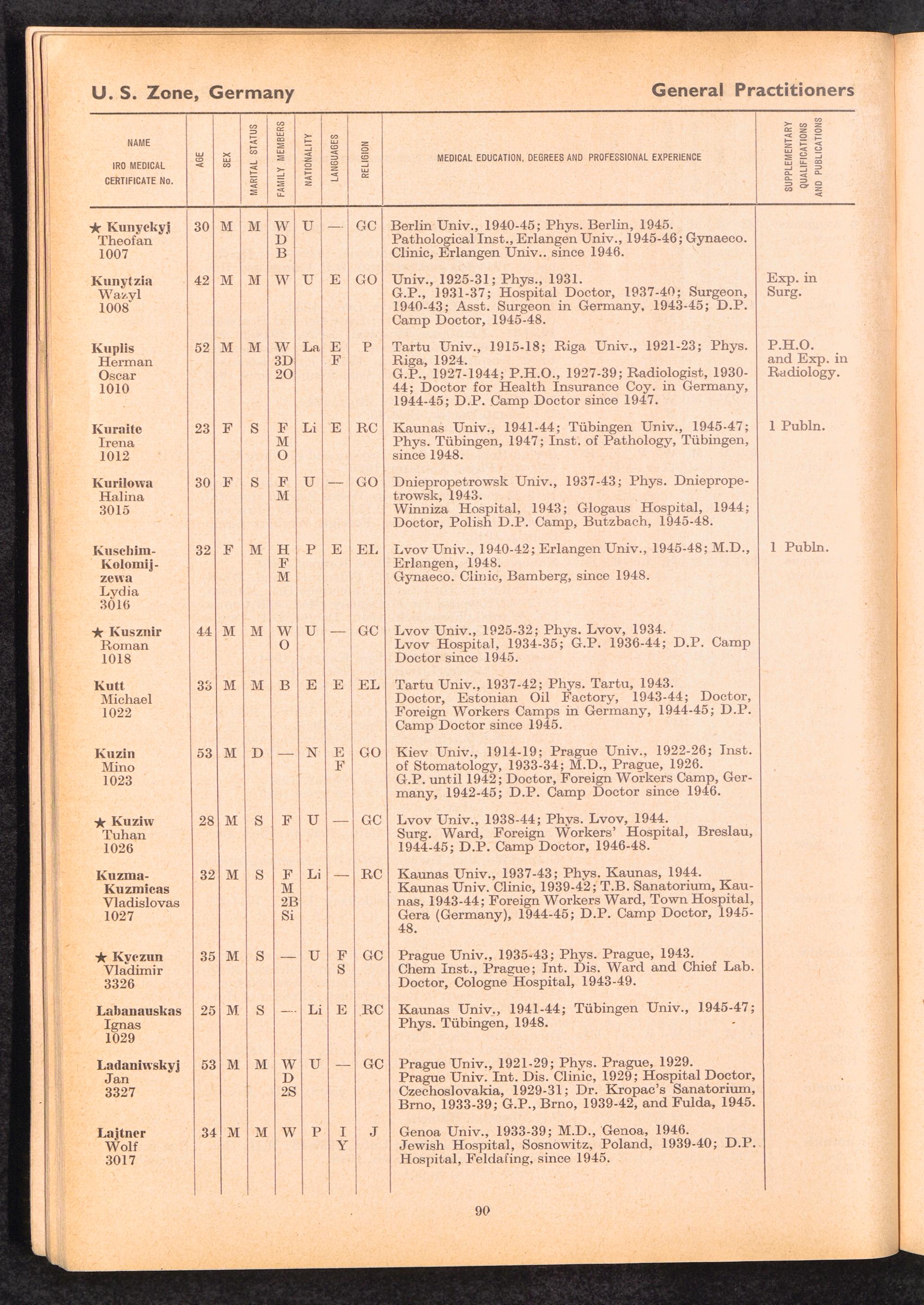 Displaced Persons Professional Medical Register / International Refugee Organization