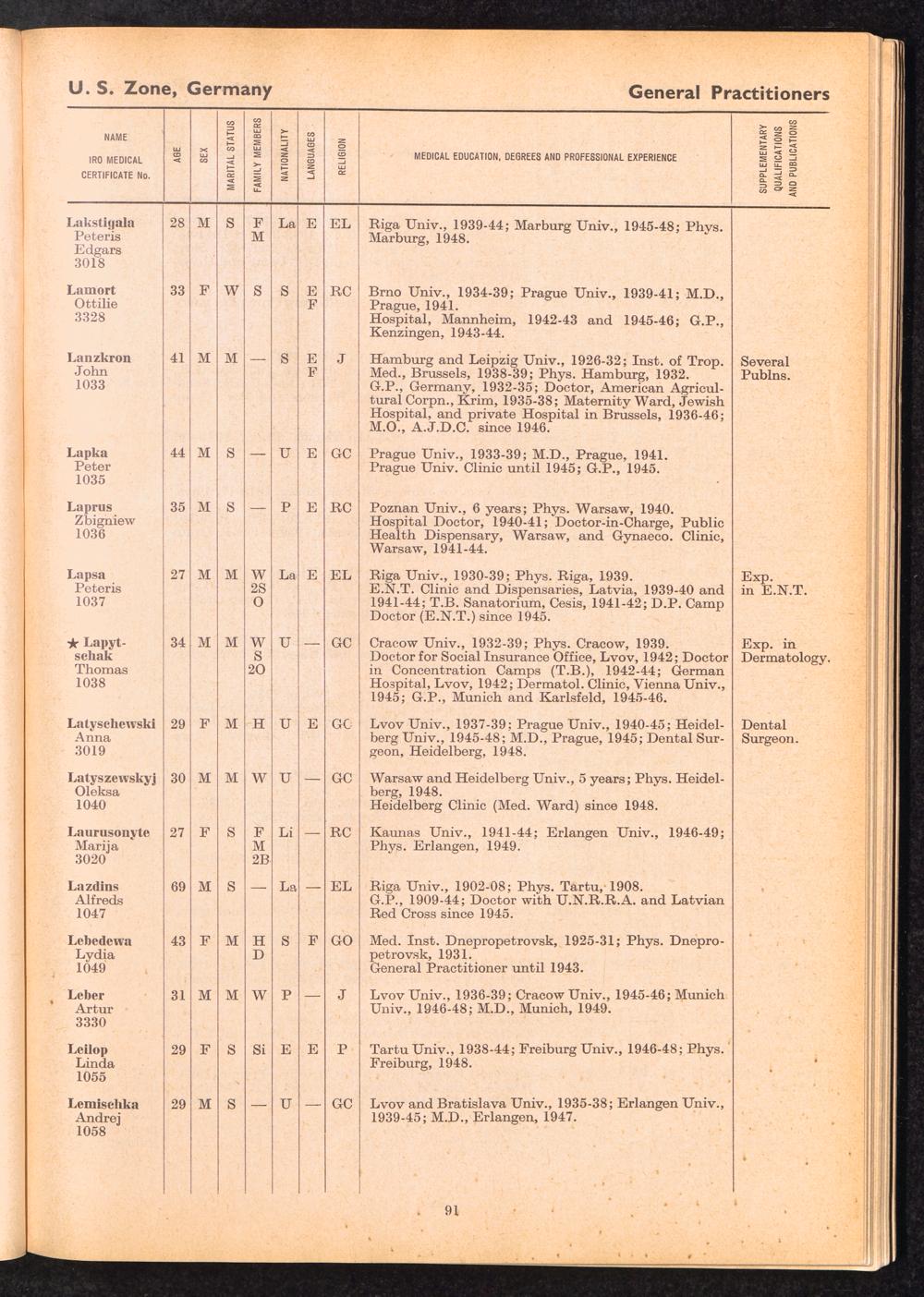 Displaced Persons Professional Medical Register / International Refugee Organization