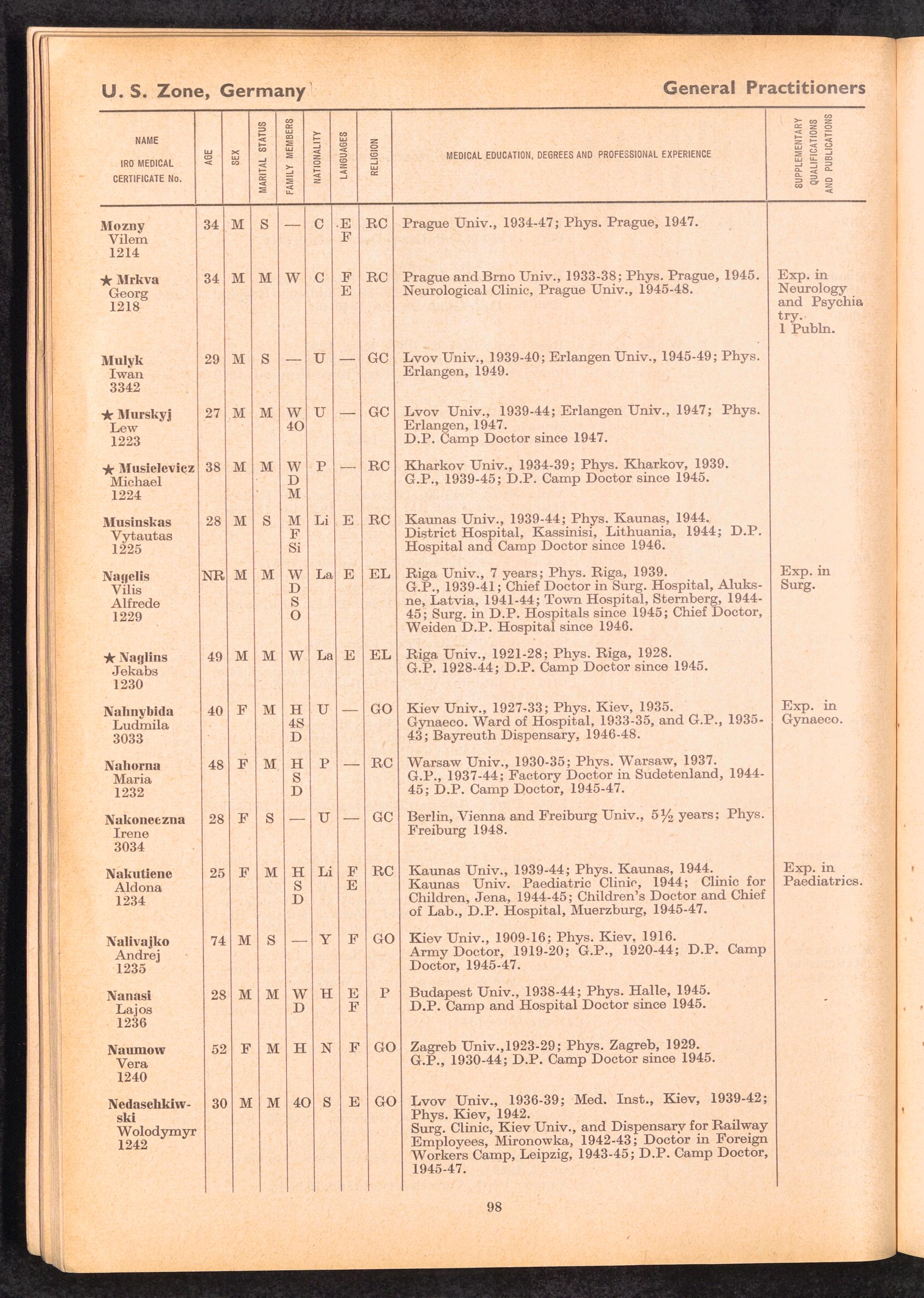 Displaced Persons Professional Medical Register / International Refugee Organization