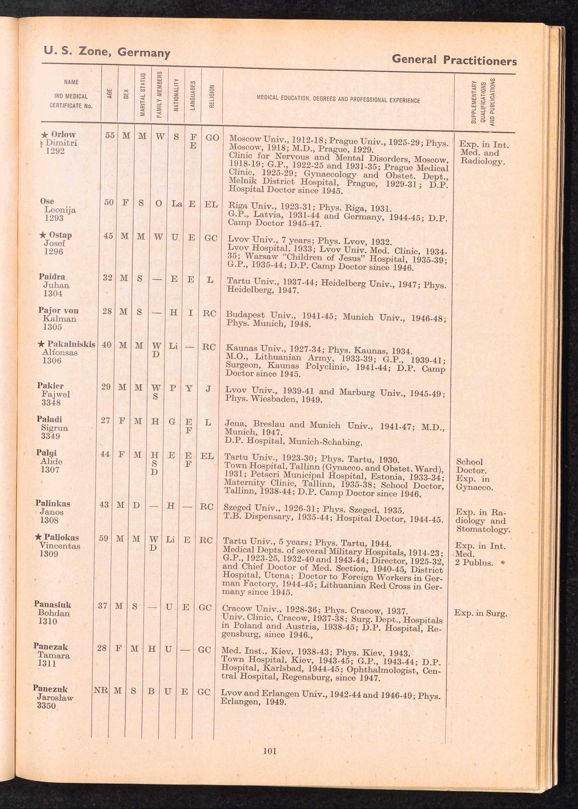Displaced Persons Professional Medical Register / International Refugee Organization