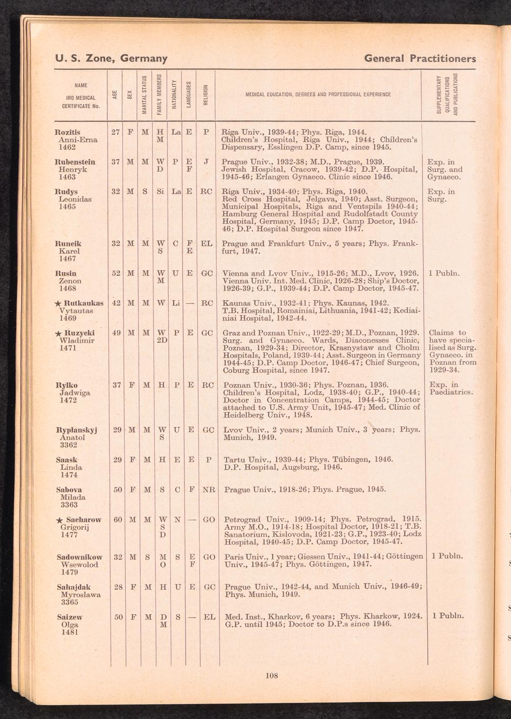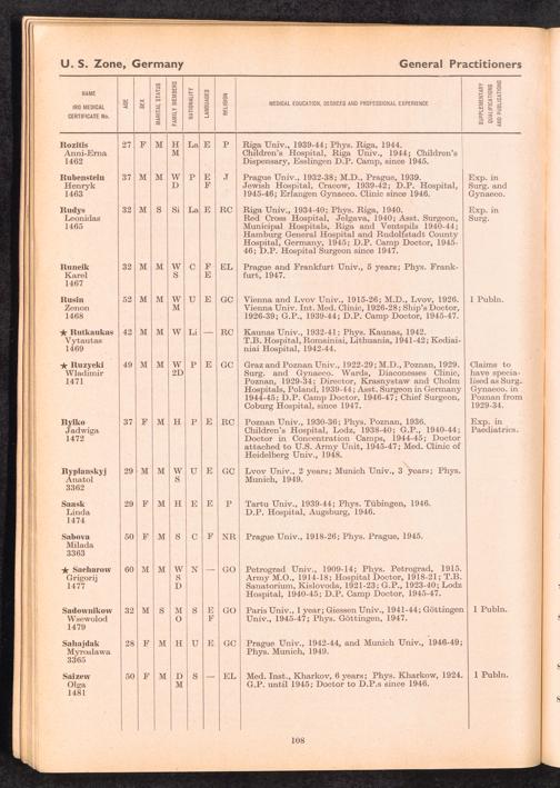 Displaced Persons Professional Medical Register / International Refugee Organization
