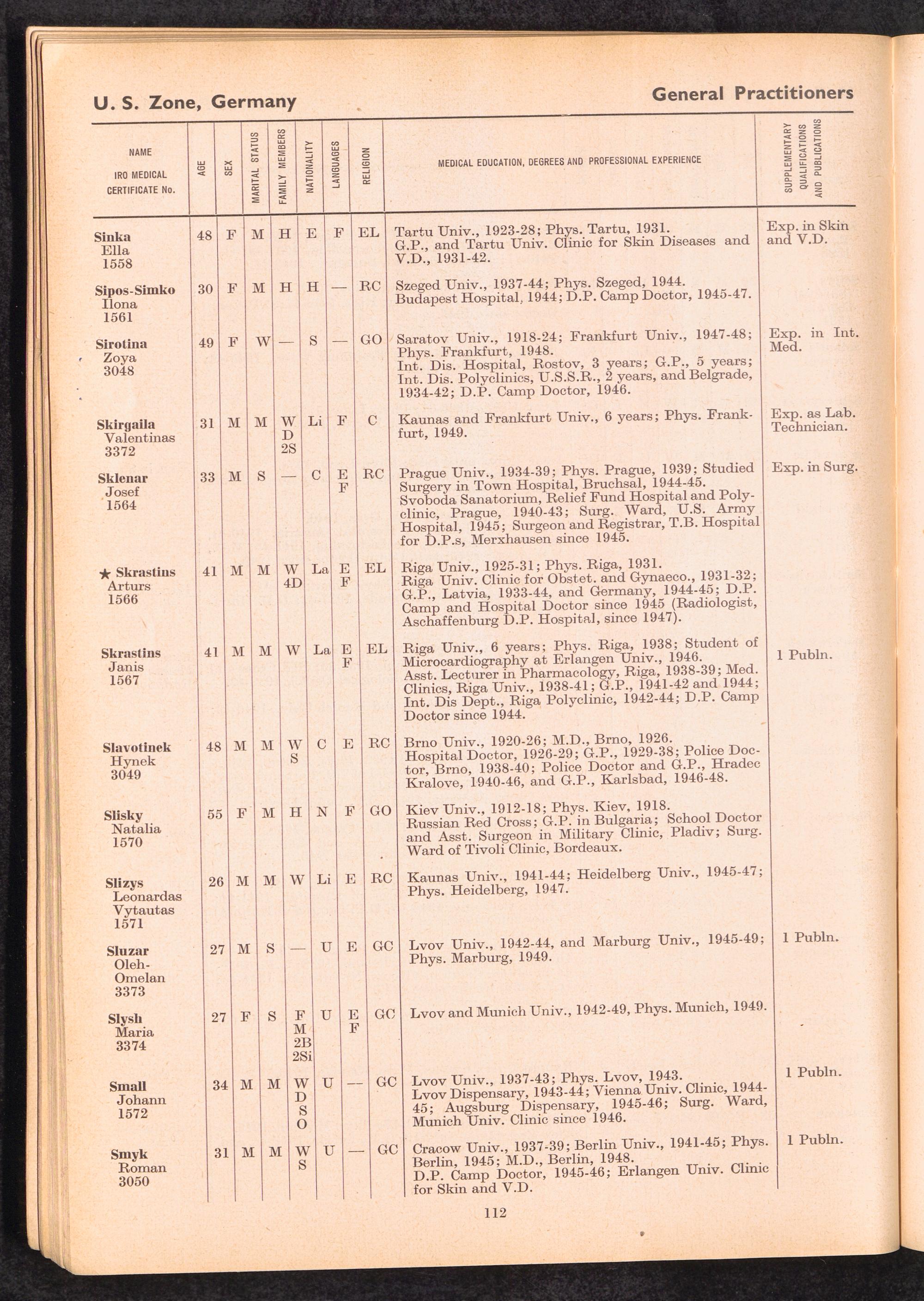 Displaced Persons Professional Medical Register / International Refugee Organization