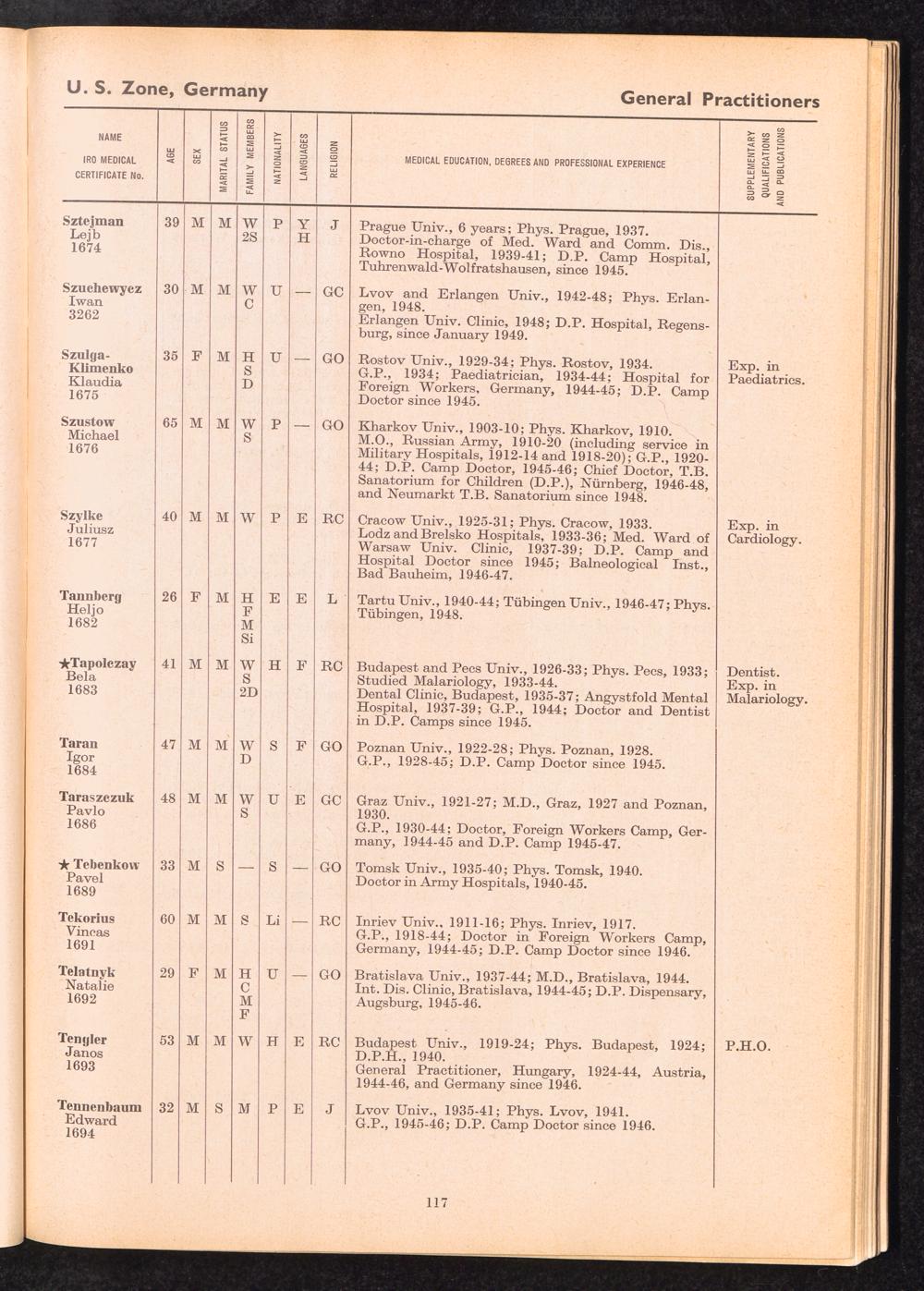 Displaced Persons Professional Medical Register / International Refugee Organization