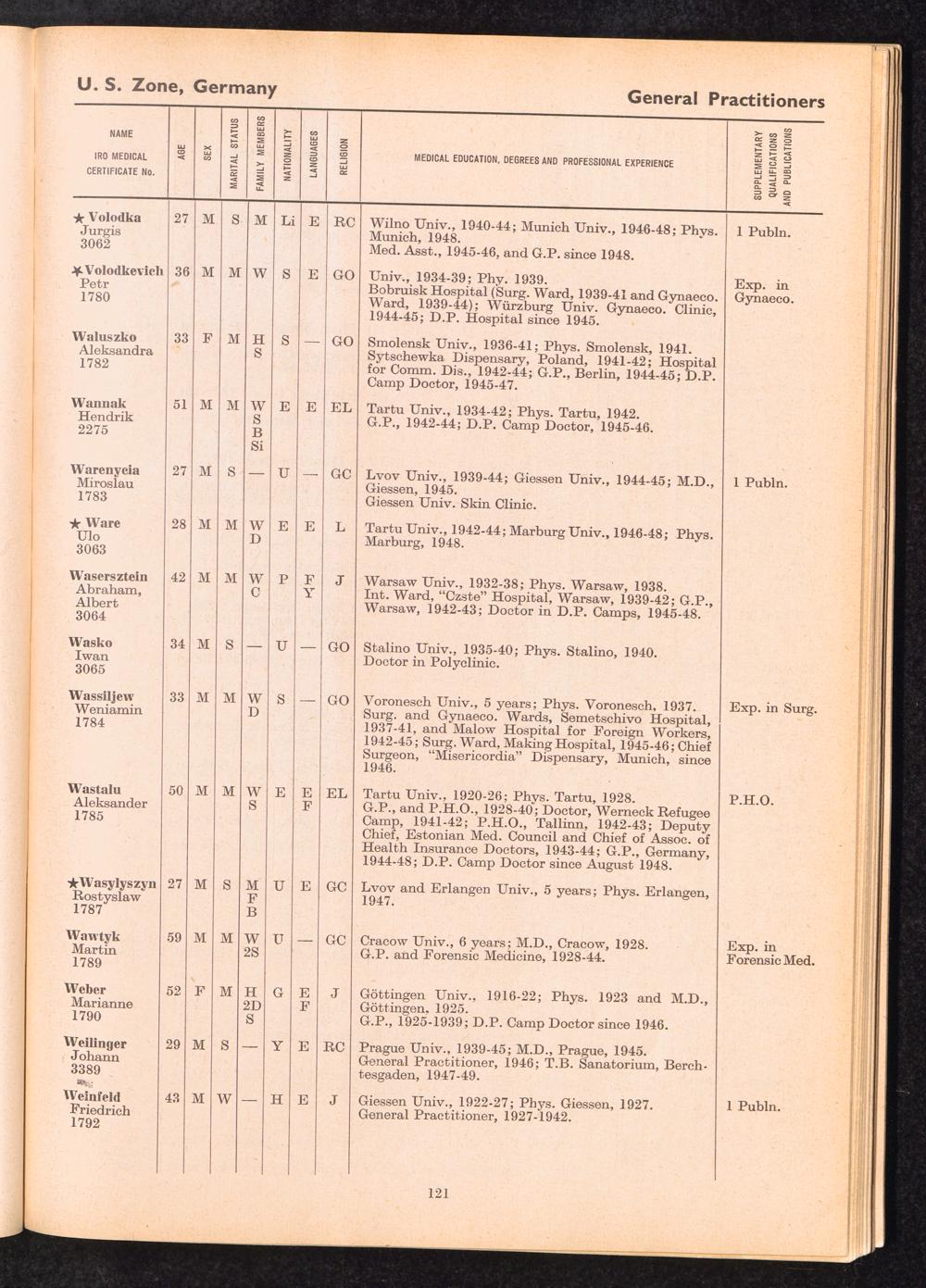 Displaced Persons Professional Medical Register / International Refugee Organization
