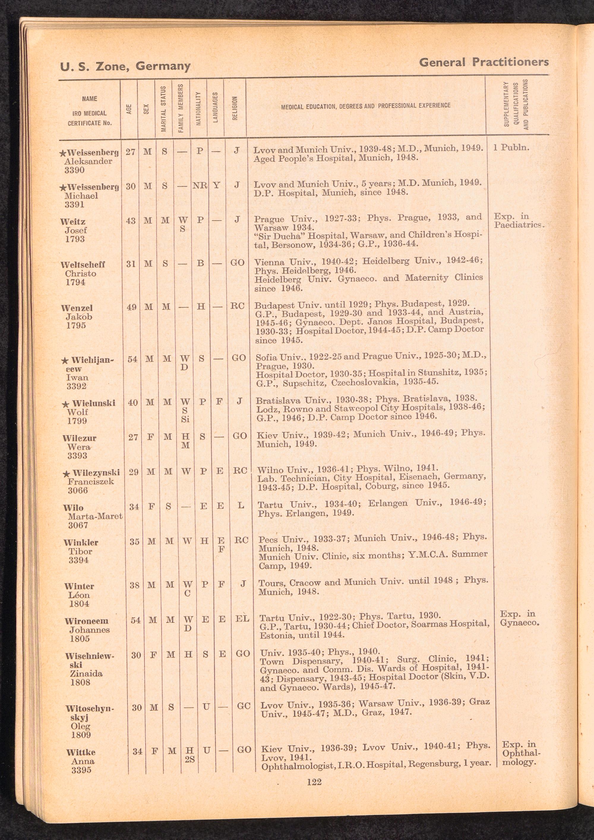 Displaced Persons Professional Medical Register / International Refugee Organization