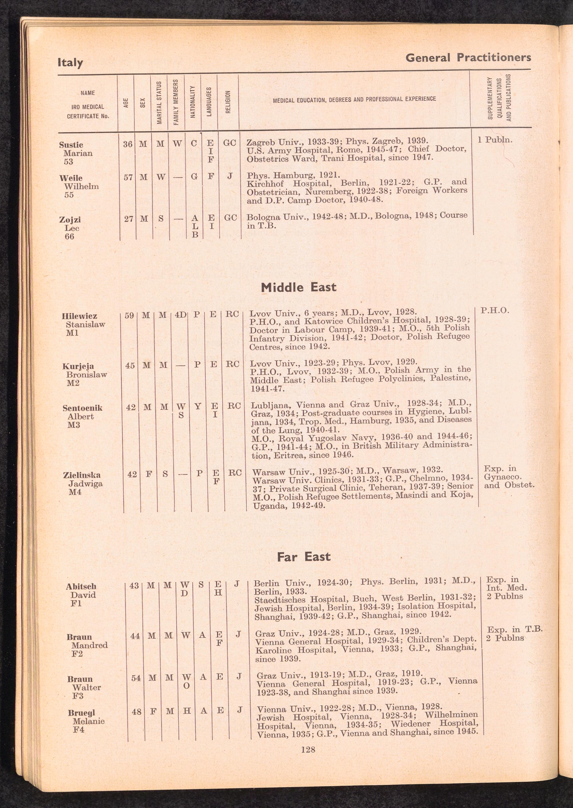 Displaced Persons Professional Medical Register / International Refugee Organization