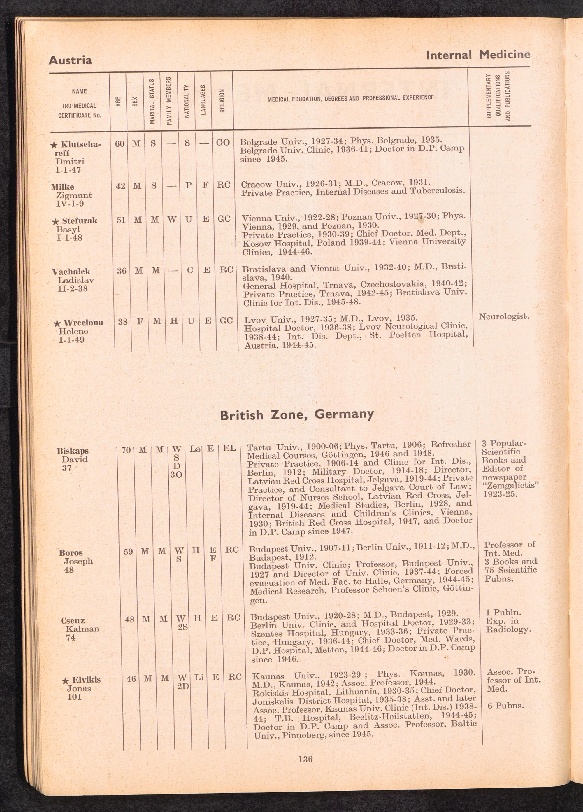 Displaced Persons Professional Medical Register / International Refugee Organization