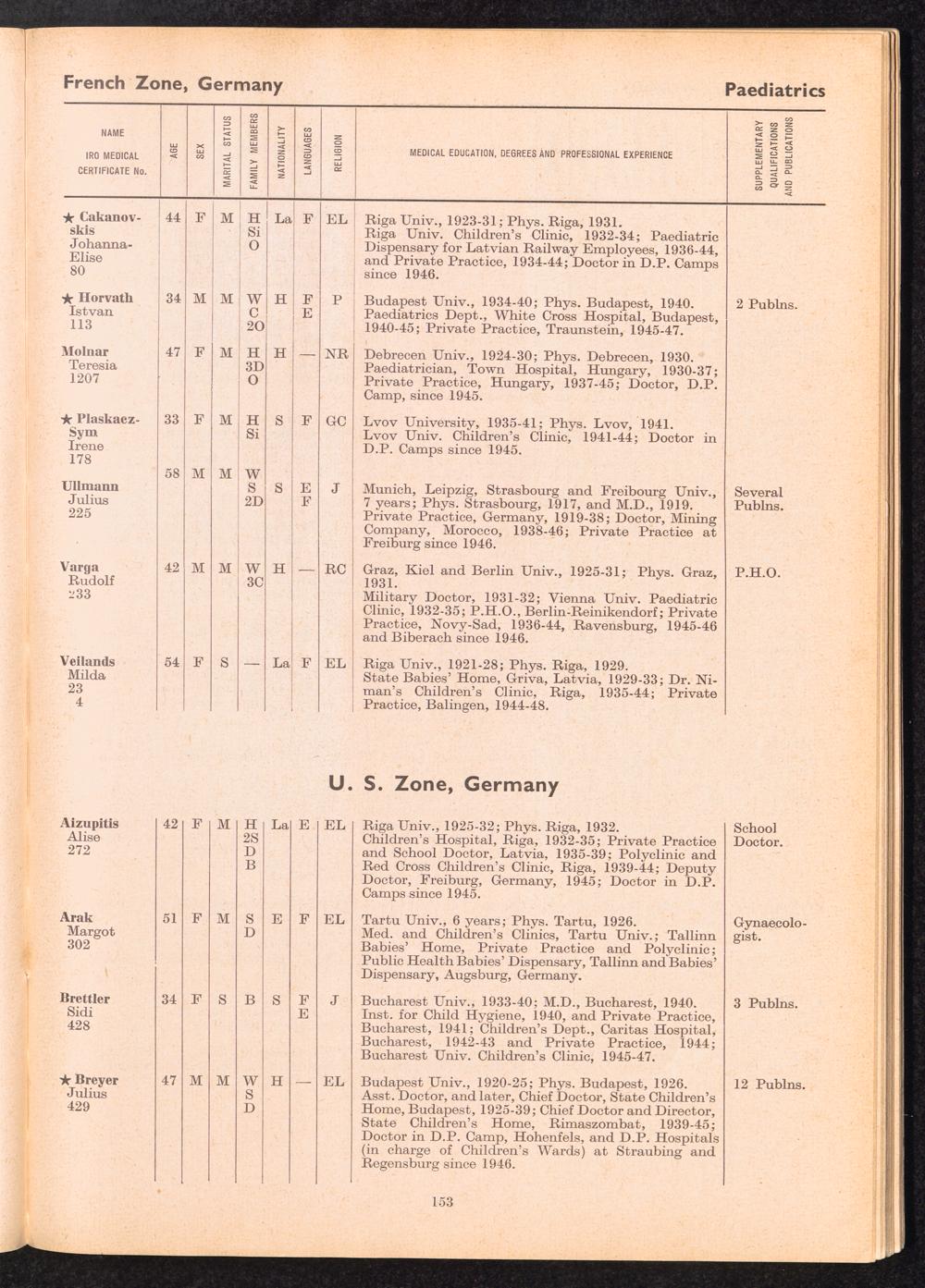 Displaced Persons Professional Medical Register / International Refugee Organization