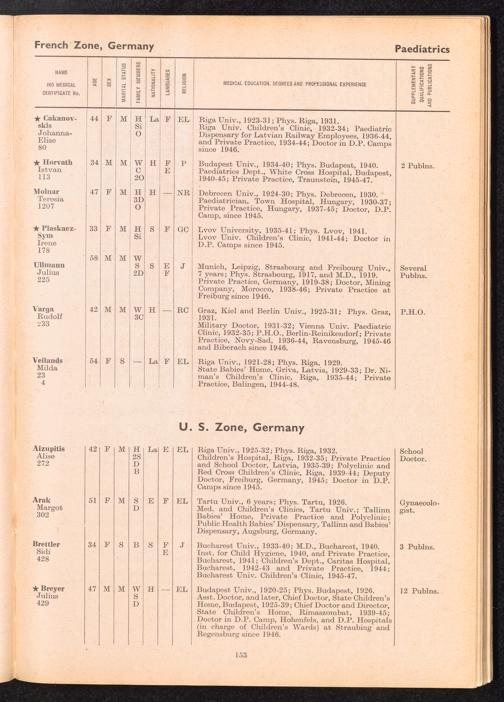 Displaced Persons Professional Medical Register Physician Specialists