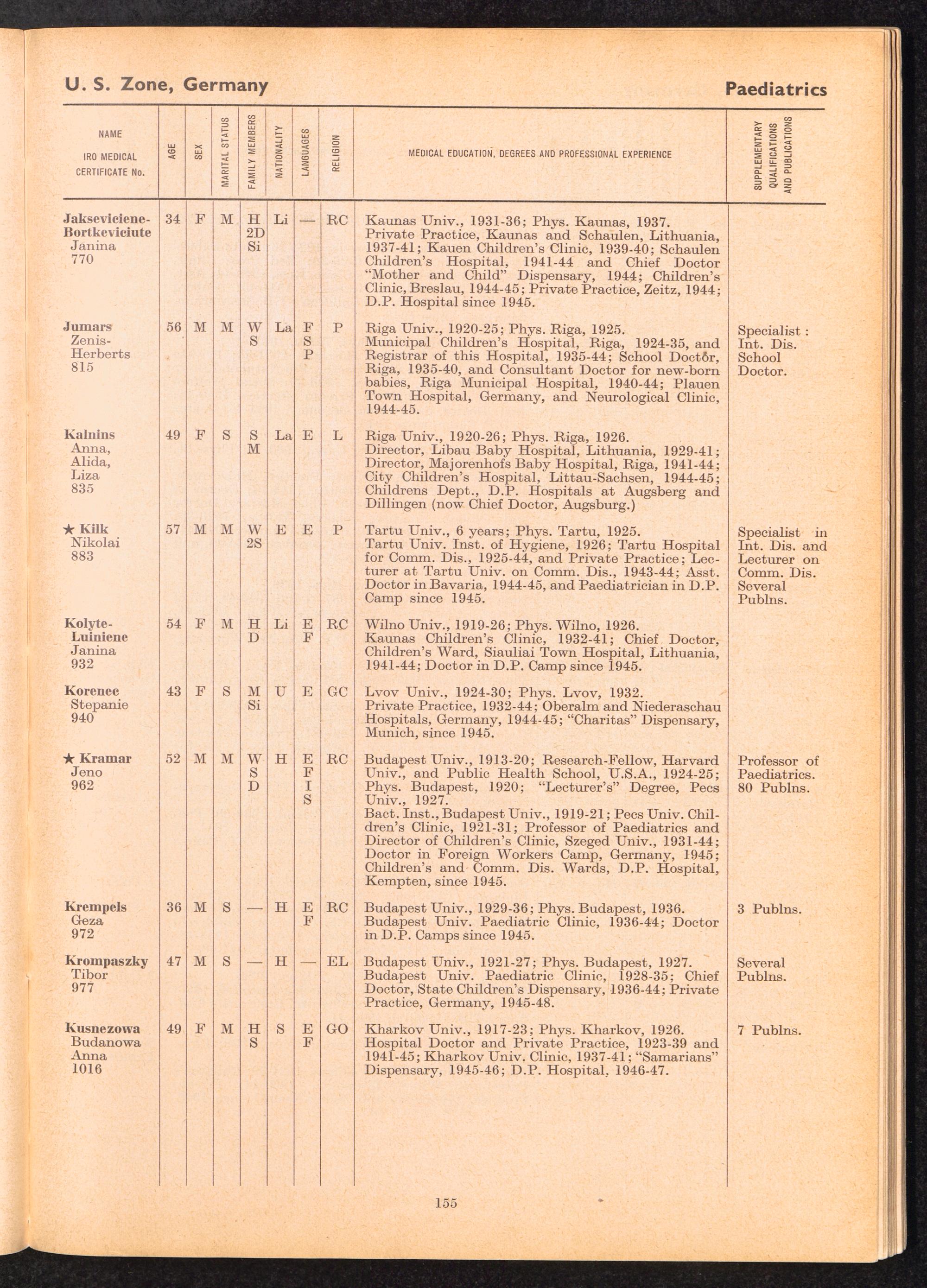 Displaced Persons Professional Medical Register / International Refugee Organization