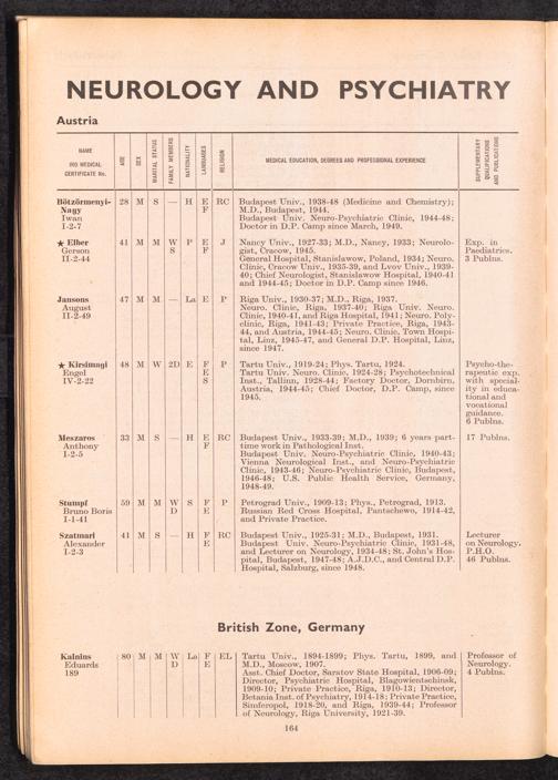 Displaced Persons Professional Medical Register / International Refugee Organization