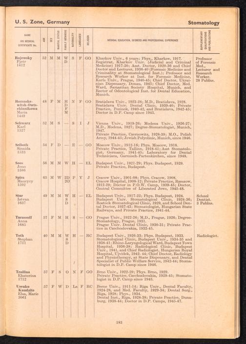 Displaced Persons Professional Medical Register Physician Specialists