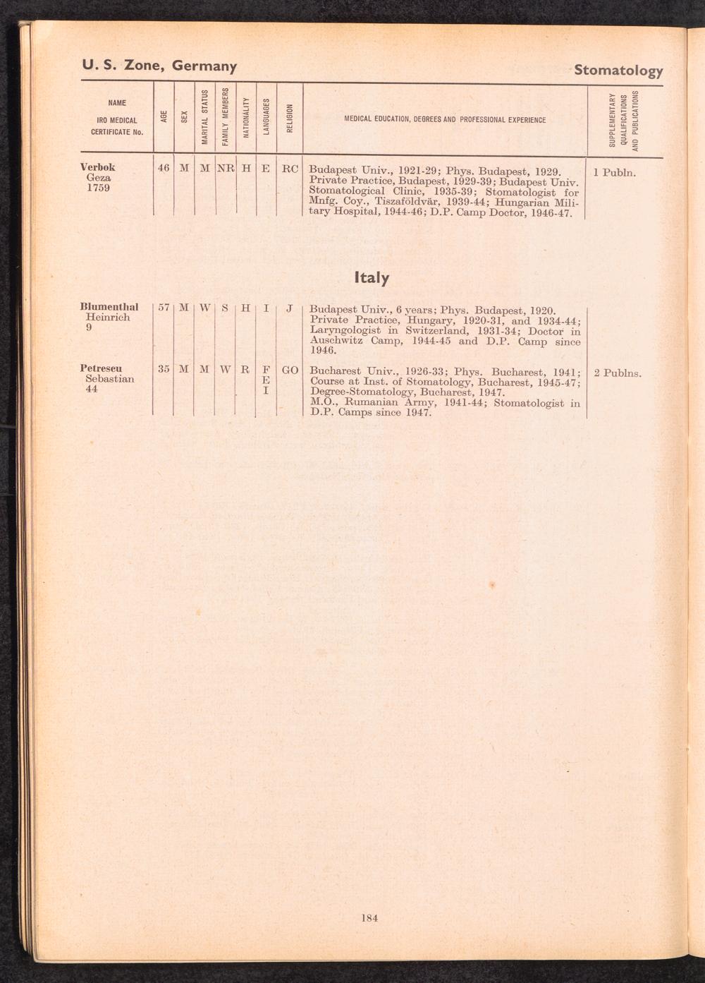 Displaced Persons Professional Medical Register / International Refugee Organization